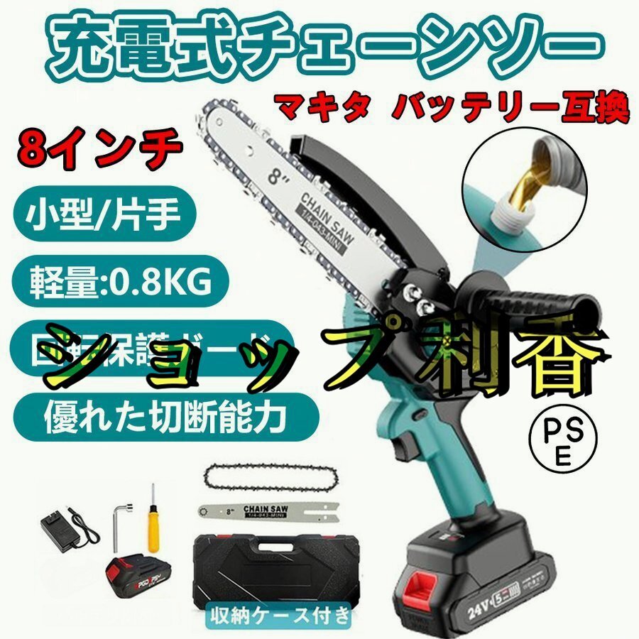 充電式チェーンソー 電動チェーンソー マキタ 18Vバッテリー互換対応 8インチ 小型 チェンソー 家庭用 片手 強力 軽量 木工切断 枝切り 526