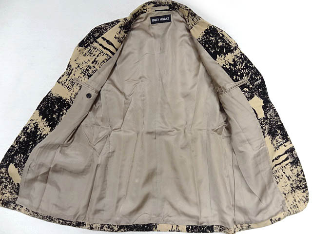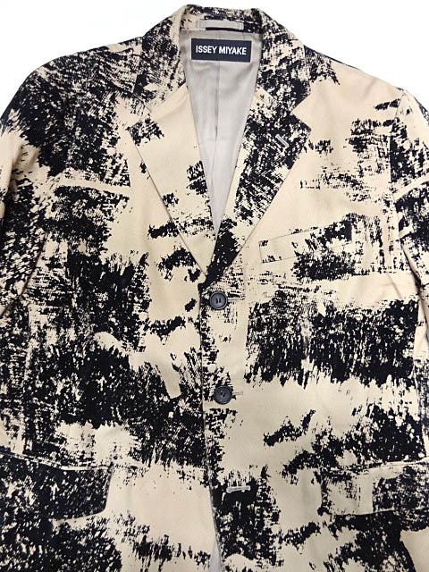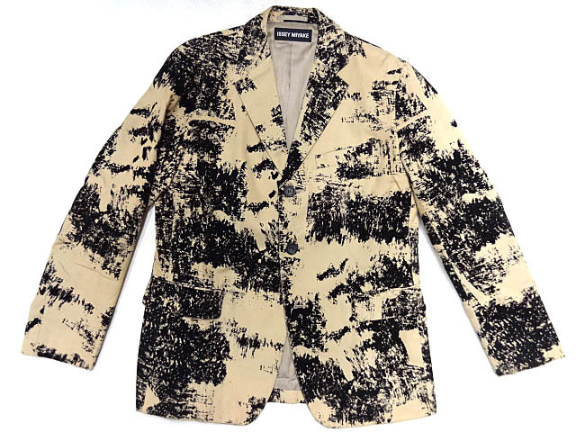 イッセイミヤケ ISSEY MIYAKE テーラード ジャケット 黒 ベロア ランダム ペイント ペンキ デザイン ベージュ ブラック コットン ポリ 90S