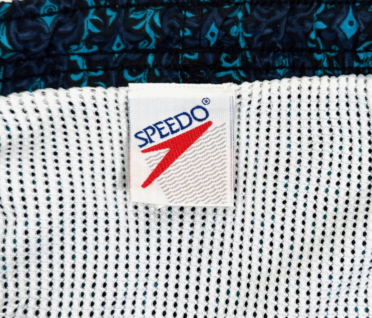 希少 1990s SPEEDO Swim shorts M オールド スピード スイムショーツ ナイロン 競泳水着 総柄 青