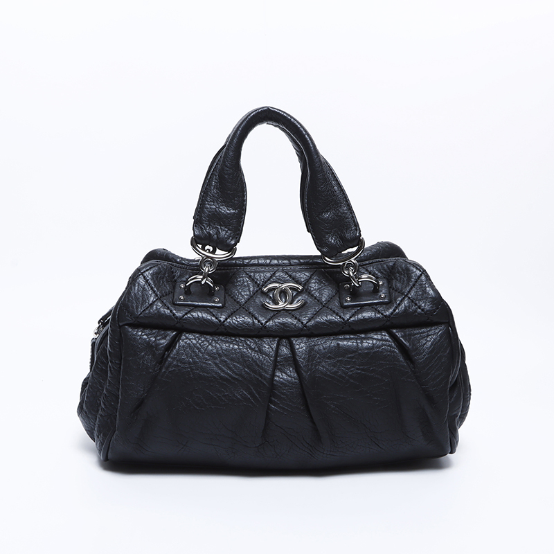 シャネル CHANEL ハンドバッグ 12番台 シルバー金具 ココマーク ボストンバッグ ブラック