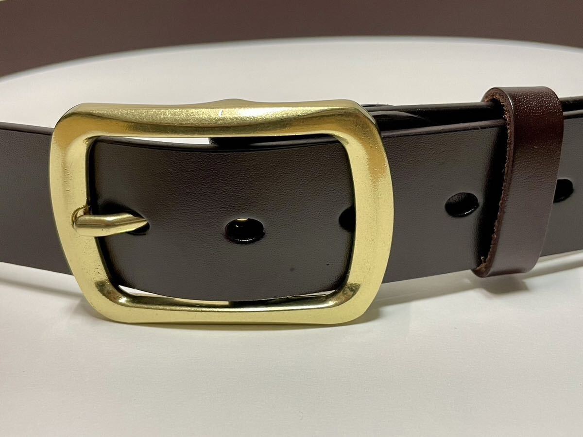 ゴールドのバックルとダークブラウンのレザーの相性が良く、大人な高級感が漂うベルトになっています。