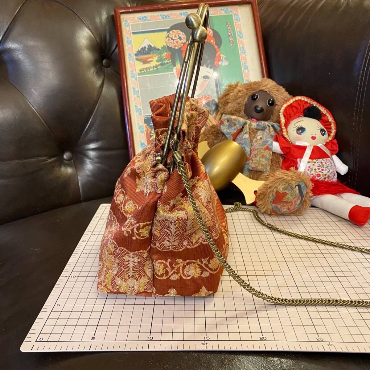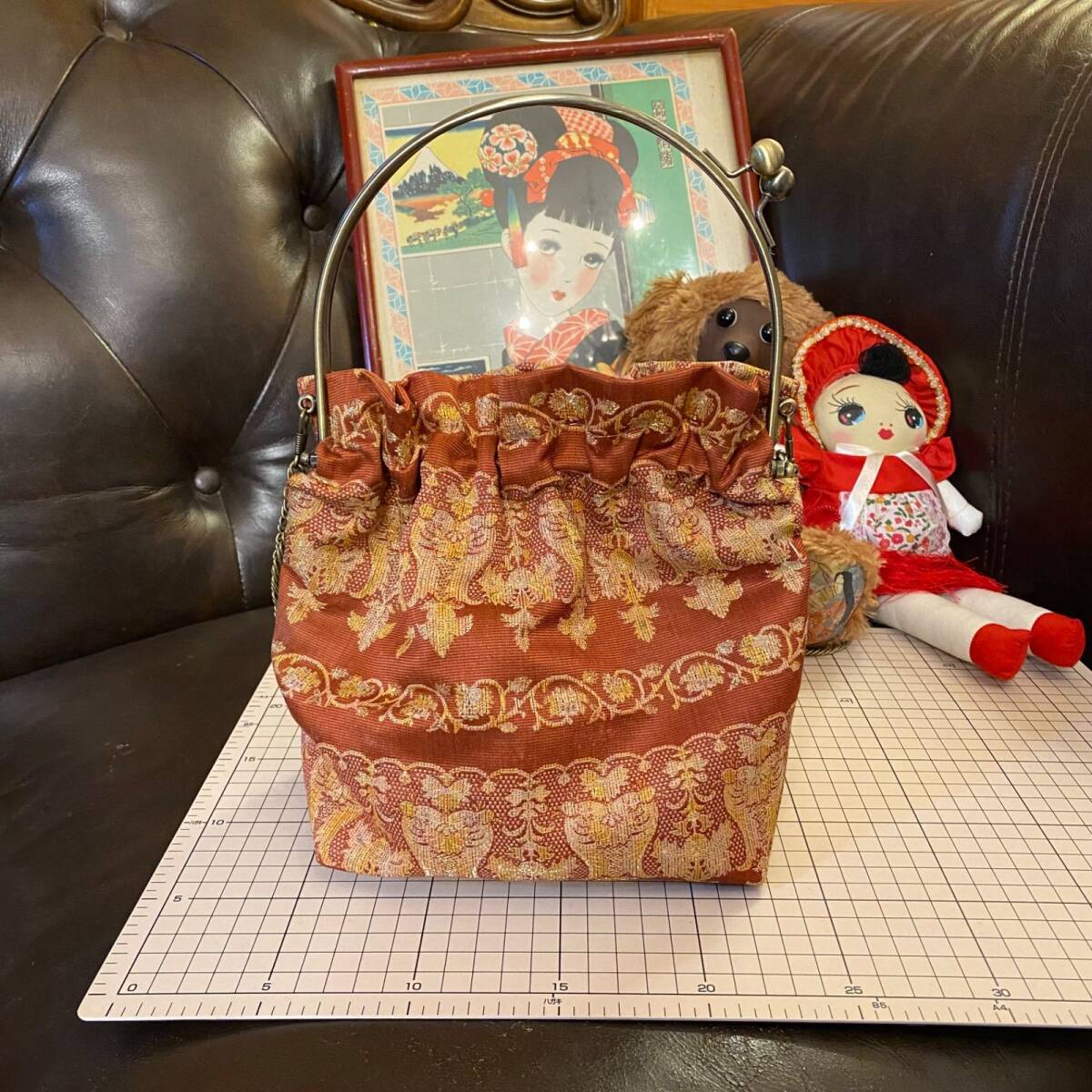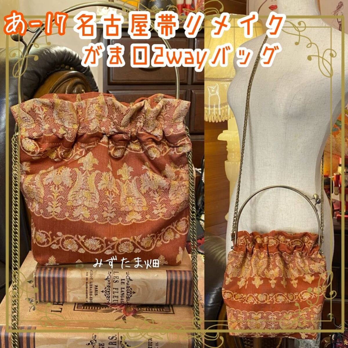 【 和洋折衷 名古屋帯リメイク 2wayショルダーバッグ ハンドバッグ ハンドバック がま口 ガマ口 ベンリー 口金 レトロ クラシカル ハンドメイド あ‐17】