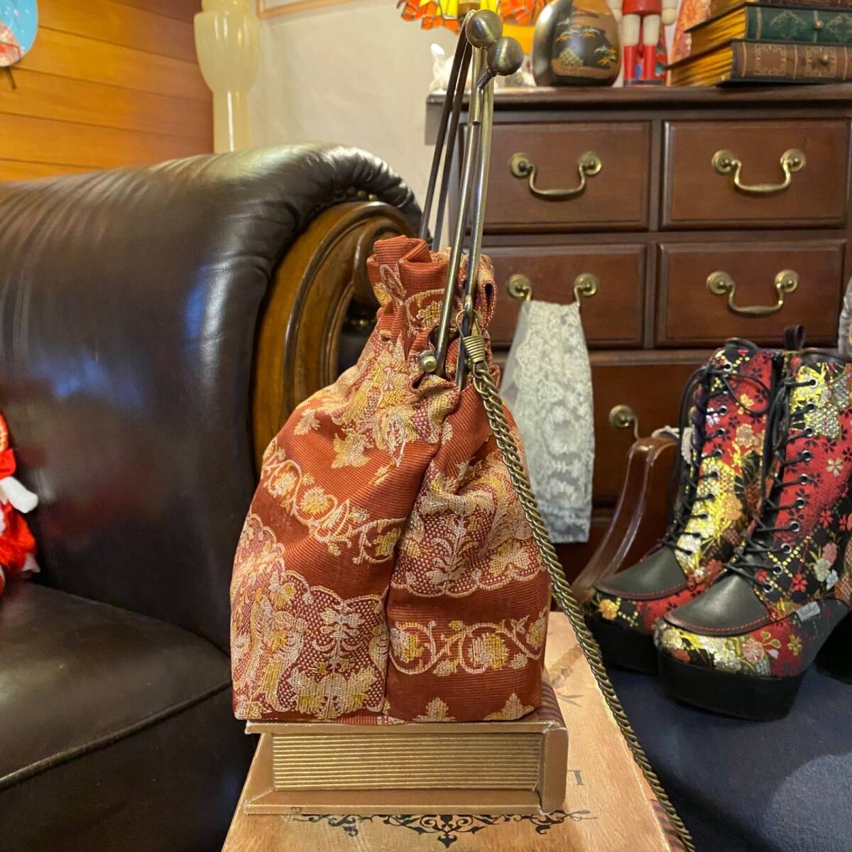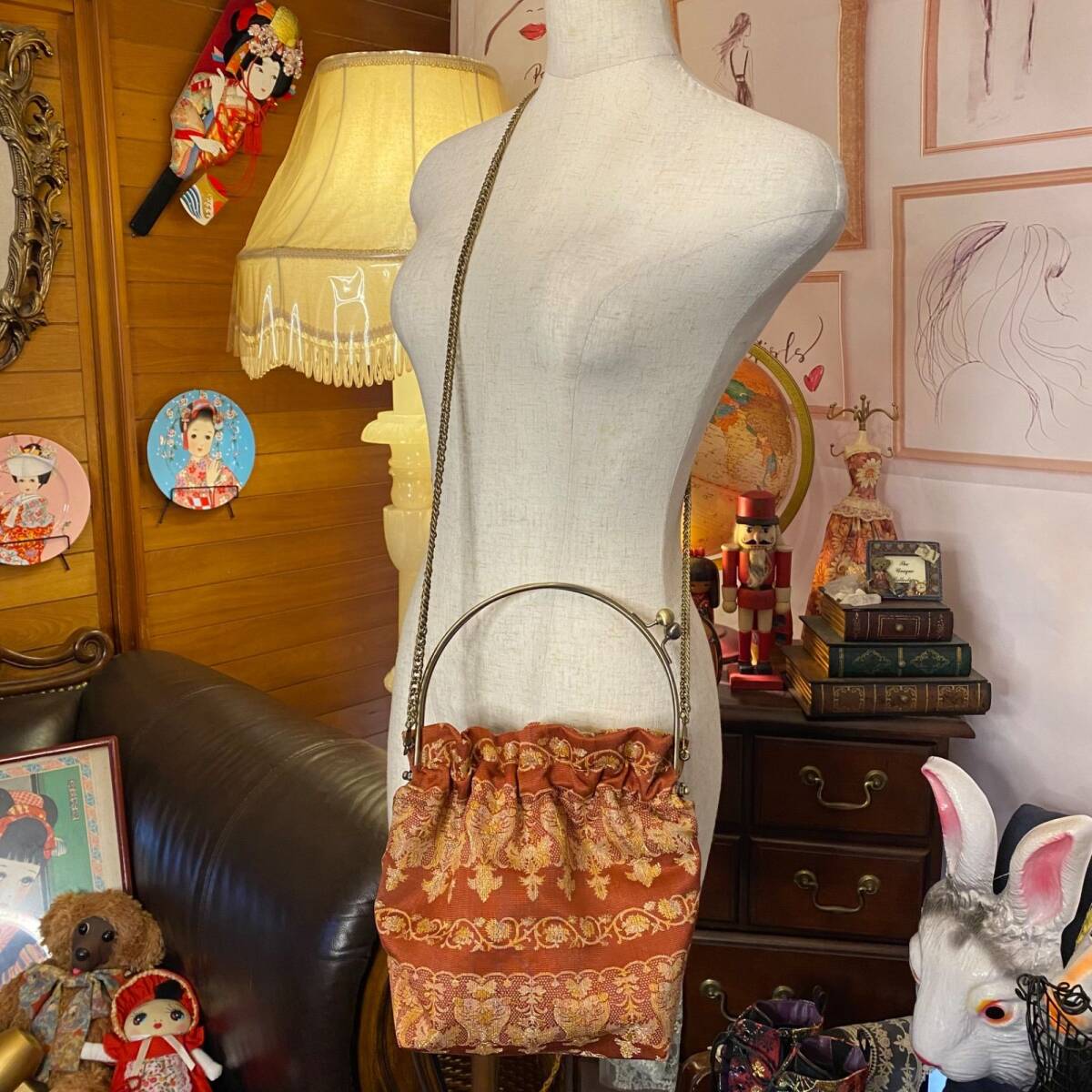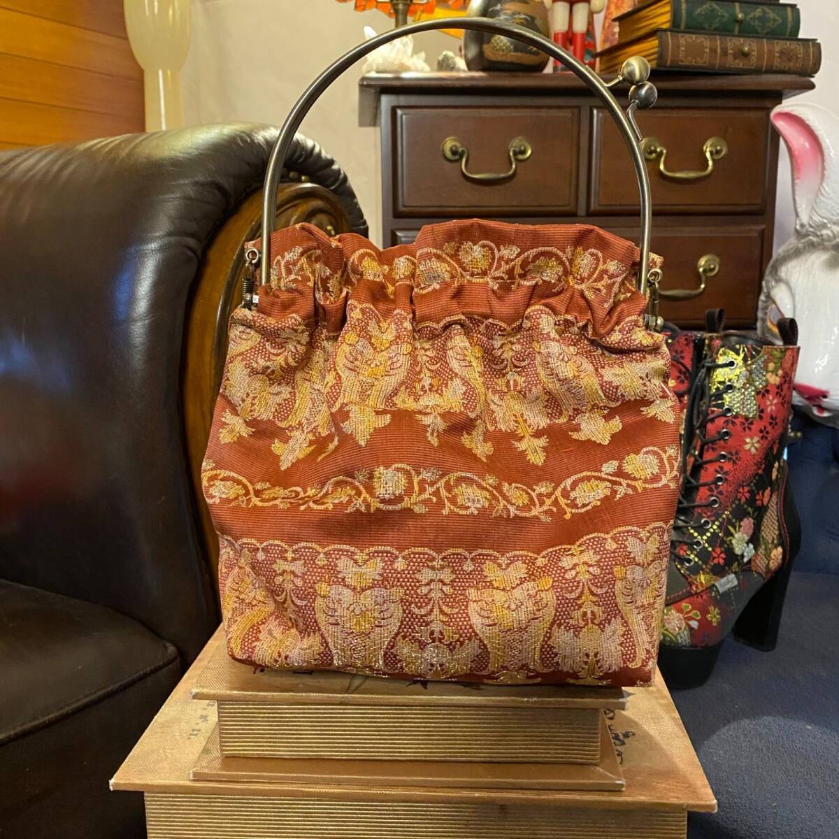 【 和洋折衷 名古屋帯リメイク 2wayショルダーバッグ ハンドバッグ ハンドバック がま口 ガマ口 ベンリー 口金 レトロ クラシカル ハンドメイド あ‐17】