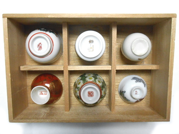 ご覧いただきありがとうございます。当商品は、九谷焼 翔山 仙守等 獅子文様 子供文様 花詰文様等 6種です。大きさは、獅子文様が直径約5.1cm×高さ約2.8cm。底径が約1.9cm。子供文様が直径約5.0cm×高さ約4.8cm。底径が約3.3cm。花詰文様が直径約5.8cm×高さ約3.6cm。底径が約2.9cmです。160505R