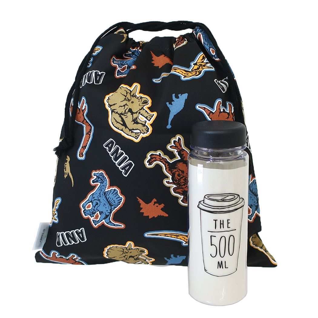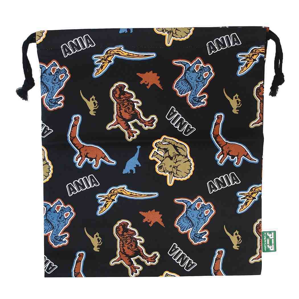 きんちゃくポーチ アニア アニマルアドベンチャー 巾着袋 恐竜 マルヨシ L クロ