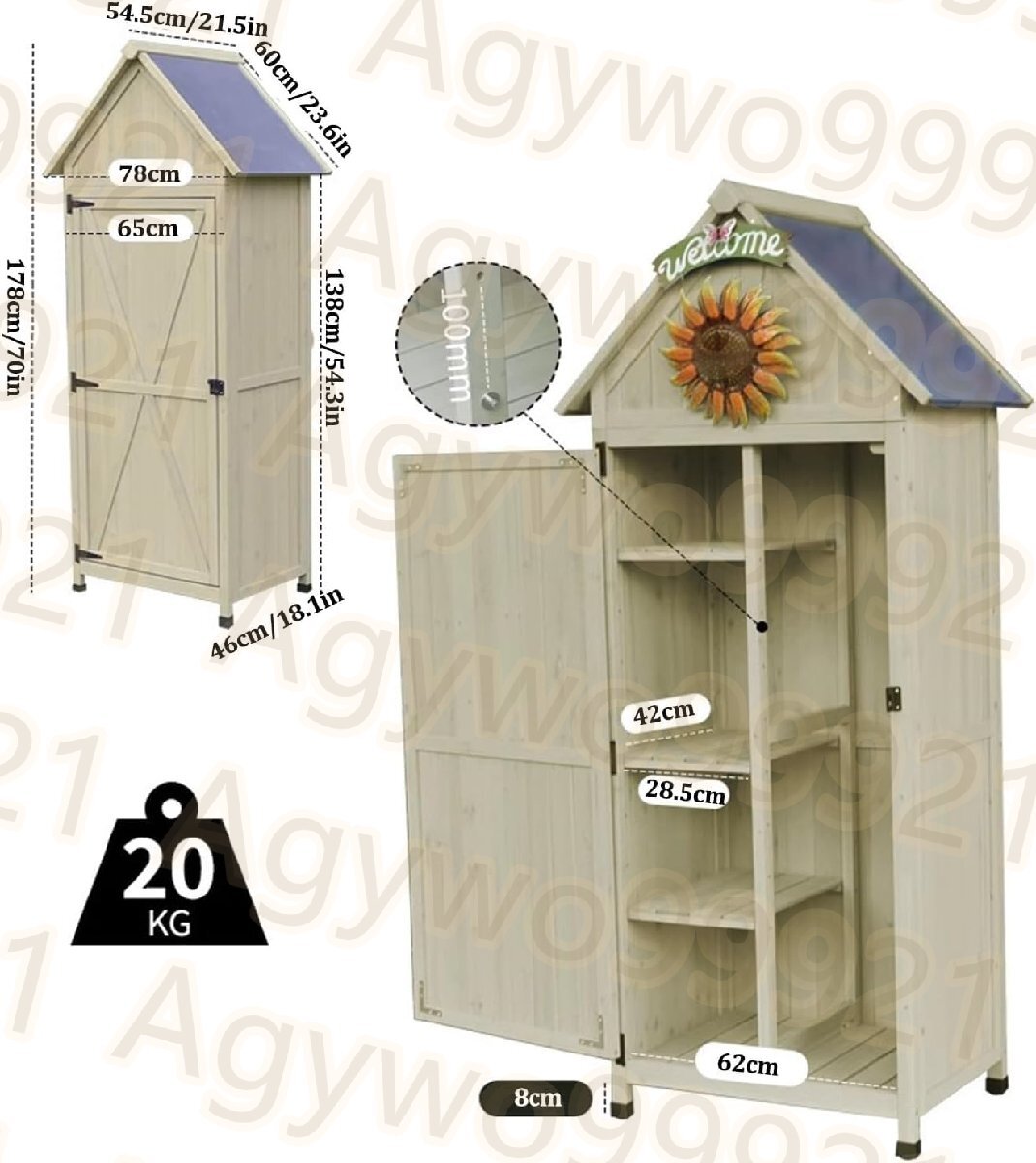この小屋は頑丈な純メタセコイアの材料で作られ、デザインが優れている。庭に置くのに十分なスペースがあると思います。庭に置くことができるかもしれません。さらに重要なのは、組み立てられたら、それを守るために何もする必要はありません。利点1.天然の実木から作られる2.取っ手付き二重ドアロッカー3.調整可能なフットレストにより、濡れた環境からツールボックスを保護4.異なるサイズの棚により、ニーズに対応するために完璧な収納エリアを作ることができます5.すべての部品と説明を含む簡単な組み立てが必要ガーデンキャビネット仕様材料:スギ色:図のようにサイズ:78×54.5×178 cm/30.7×21.5×70インチ包装数量:1