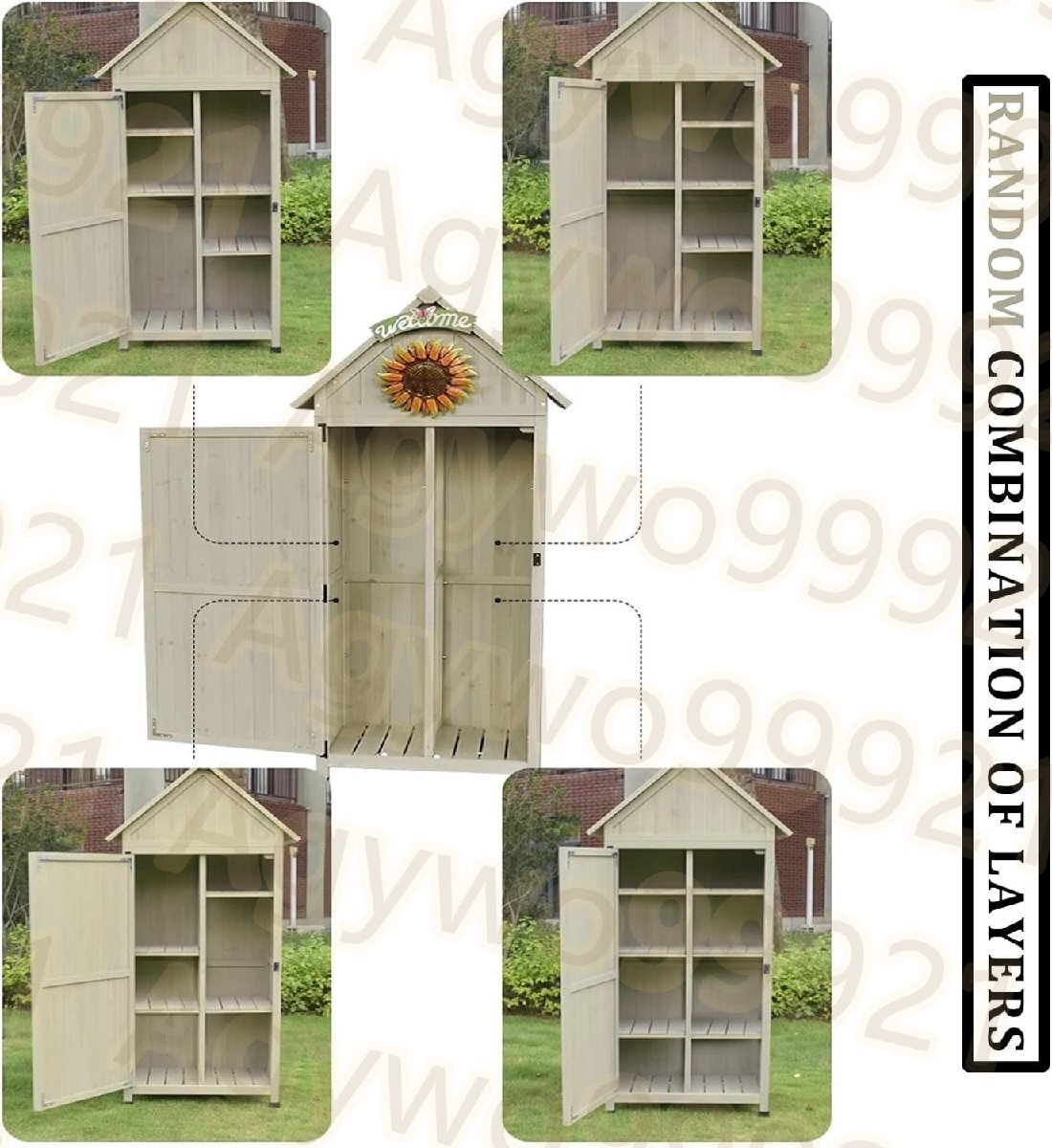 完璧な収納ラック:木製の屋根を備えた屋外の工具小屋は、水が溜まらないようにし、時の試練に耐えます。天然木の仕上げは、裏庭、庭、芝生、ガレージなどに適した、さまざまな屋内および屋外の機会にハイライトを追加します。