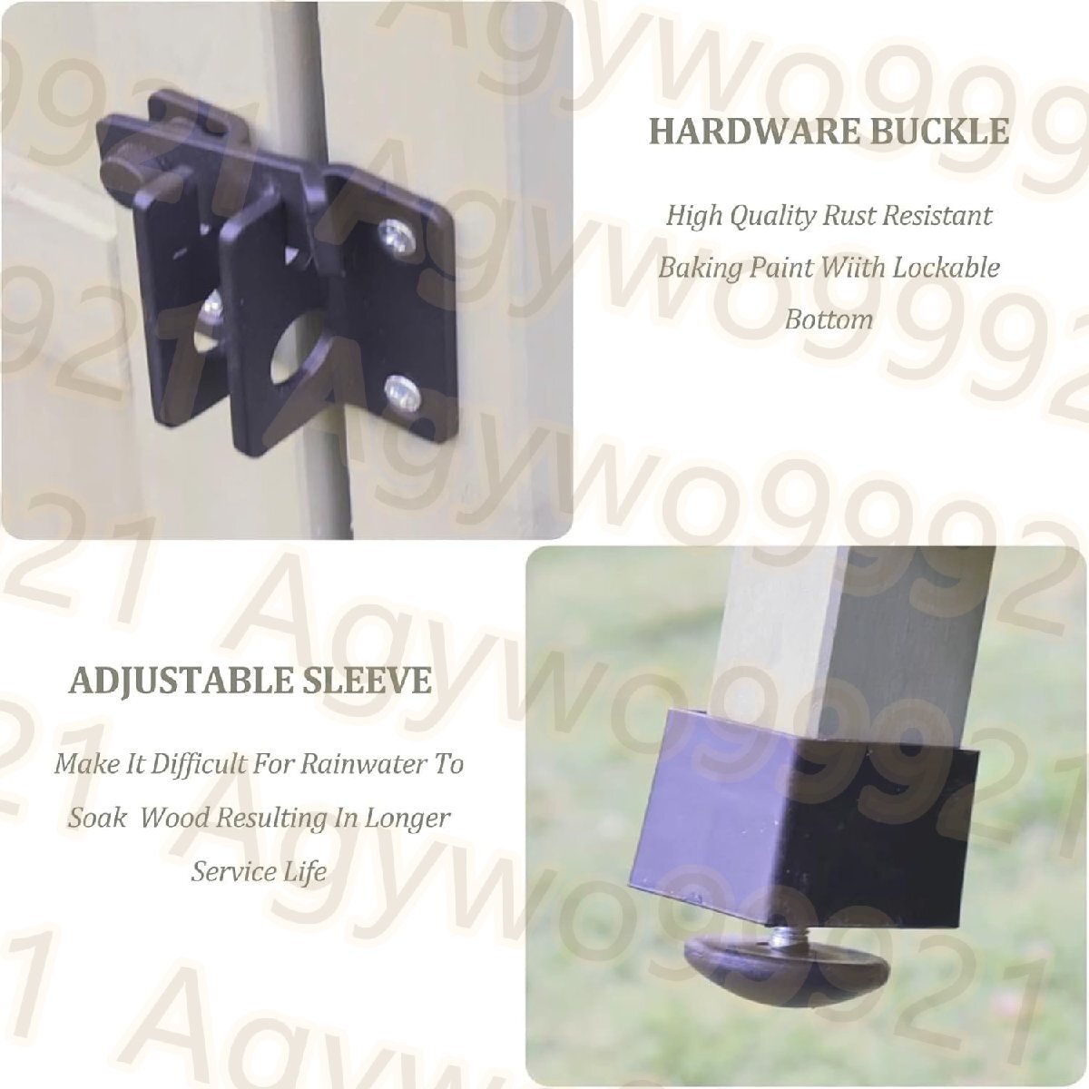 簡単な組み立て:簡単な組み立てが必要です。詳細な手順に従って、収納小屋はすべての部品を簡単に組み立てることができます。雨水が浸入するのを防ぐために、キャビネットの下部に調整可能な防水脚があります。
