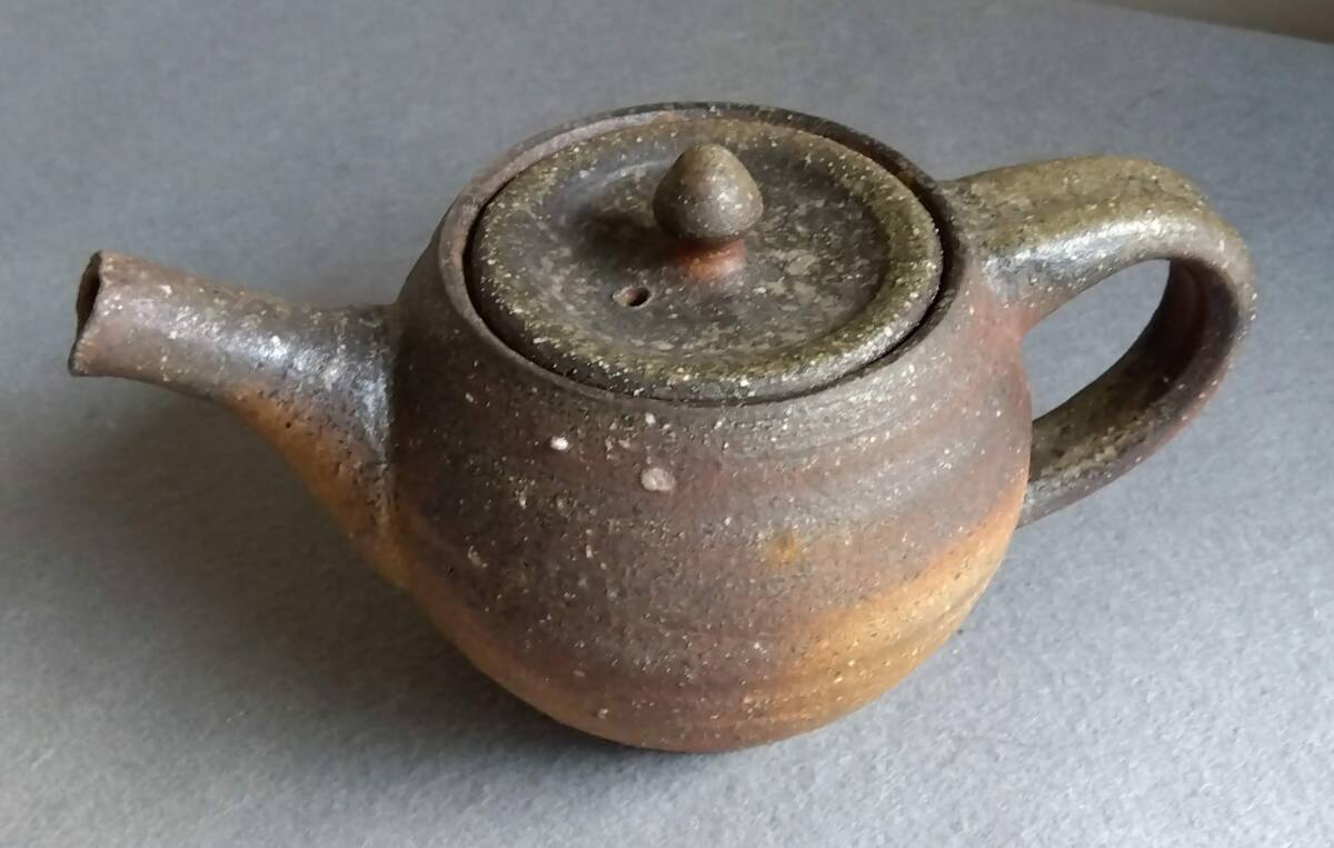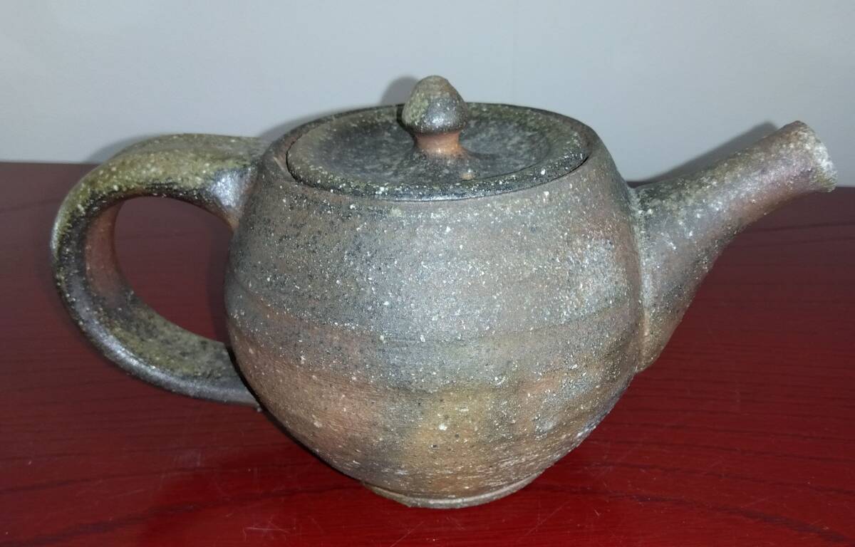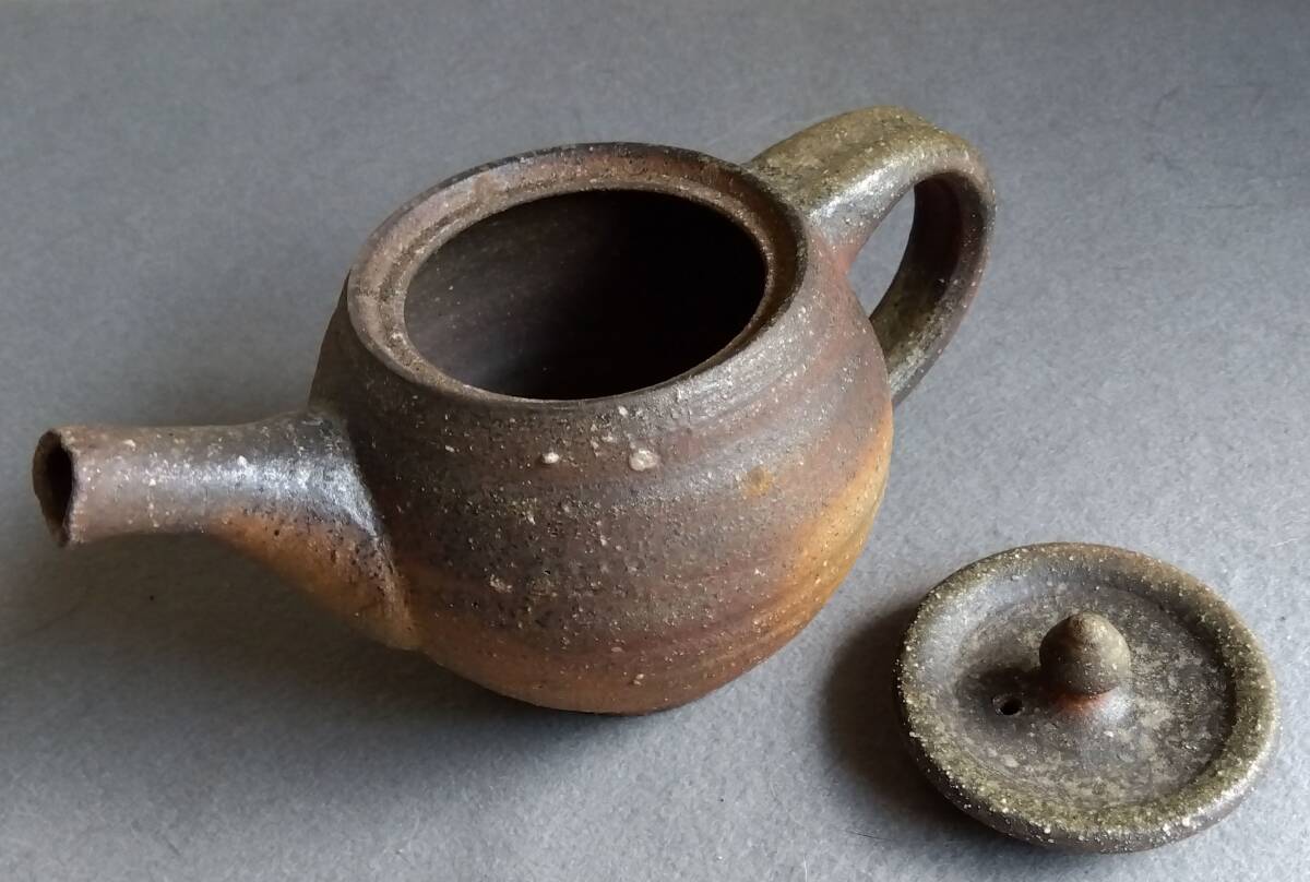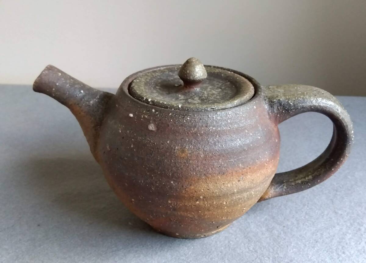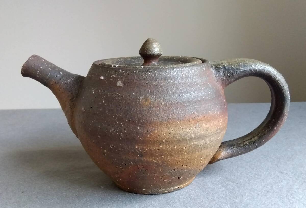 越前焼名工 松井勝彦 【青ノ木窯】 自然灰釉の究極美が迸る逸品灰釉美横手(よこで)急須 師の芸術審美観が日本伝統陶磁の世界で凝縮された逸品です。 師の卓越したろくろへら使い「至高の技」のもと「還元窯変美」「自然灰釉美」に一元化し越前焼魅力の世界を再確認させてくれます。 鉄分多く含み茶褐色に焼きあがる還元炎の輪廻の色彩を表す素朴な温かみある肌触りを持つ越前陶土「青ねば・赤べと・太古土」を最大限活かす形で作られています。 越前(陶土)が表す独特の質感を最大限に活かす【石ハゼの妙】【灰被り】が「還元窯変美」「自然灰釉美」に三位一体化に組み合わされ斬新で魅力あふれる世界を創出しています。日常生活道具雑器を超えた師の斬新なデザイン造形観審美眼が垣間見られ 心和む風趣を醸し出し 注がれたお茶の味わいを別次元へと誘ってくれます。サイズ: 注ぎ口10X40mm持ち手幅径20/30mm蓋部口径75mm見込み深さ80mm全高/蓋込み高105mm 蓋つまみ部30㎜ 高台厚/径5X60mm 包装:クラフトボックスプチプチ包装 出品者覧の【出品中の商品を見る】より 他にも多数の作品を出しておりますので御参照してください。 同梱可能ですので宜しくお願い致します