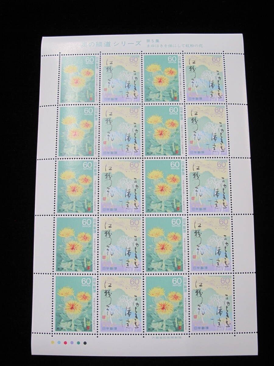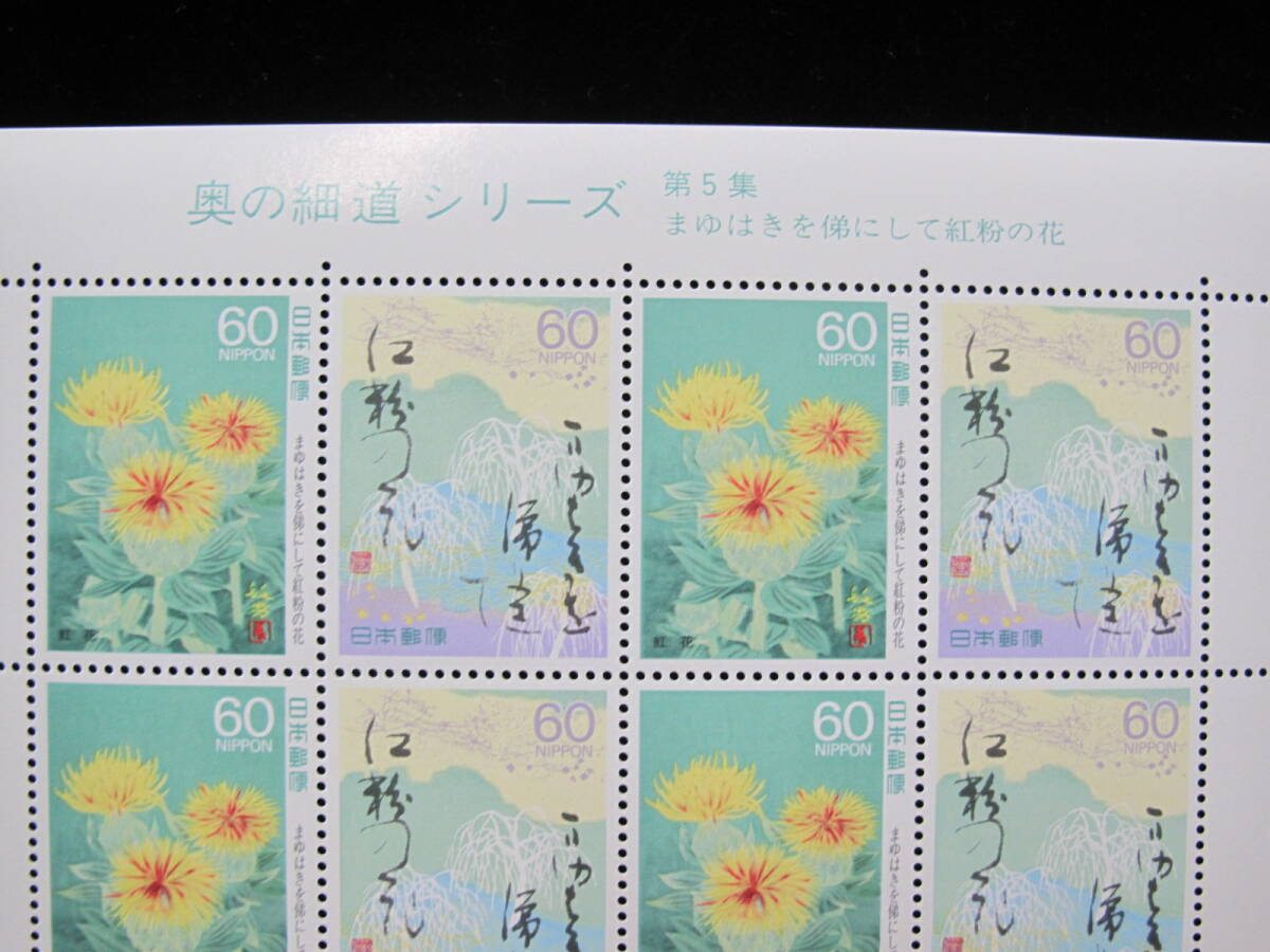 奥の細道シリーズ 第5集 まゆはきを俤にして紅粉の花  60円 記念切手シート ⑤