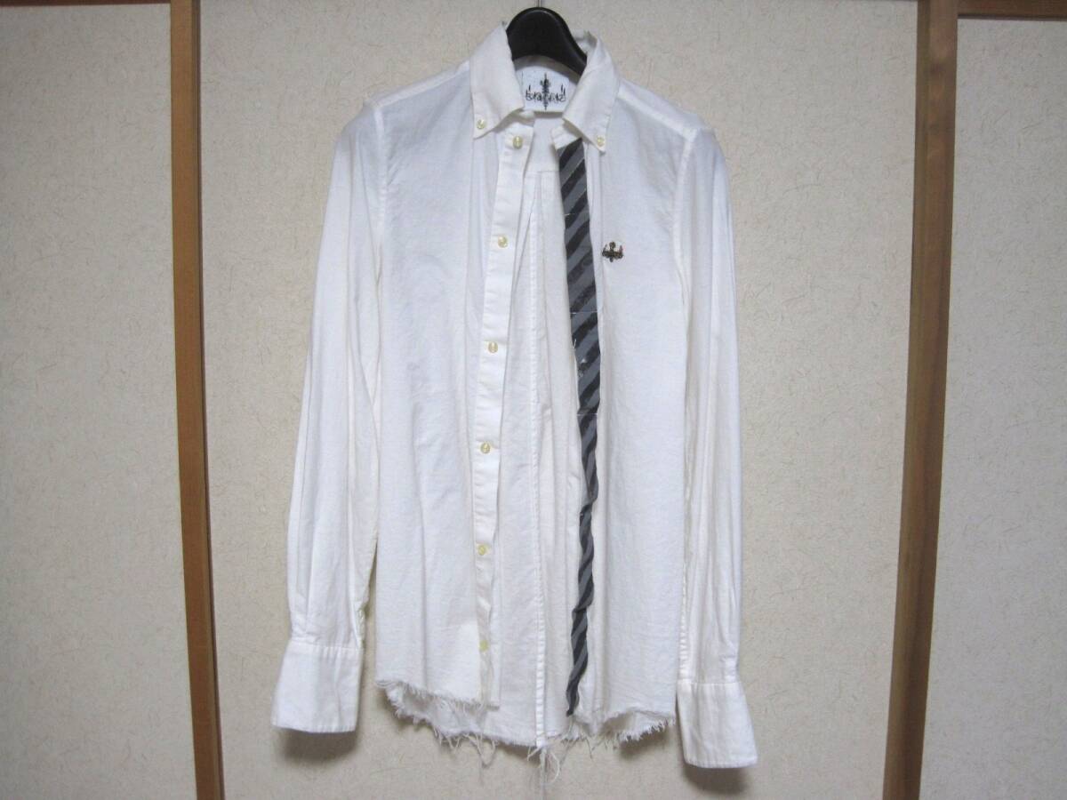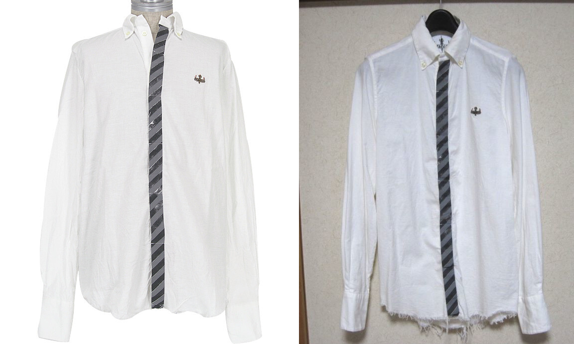 胸にはワッペンが貼られ、裾はあえて切りっ放しになっている。