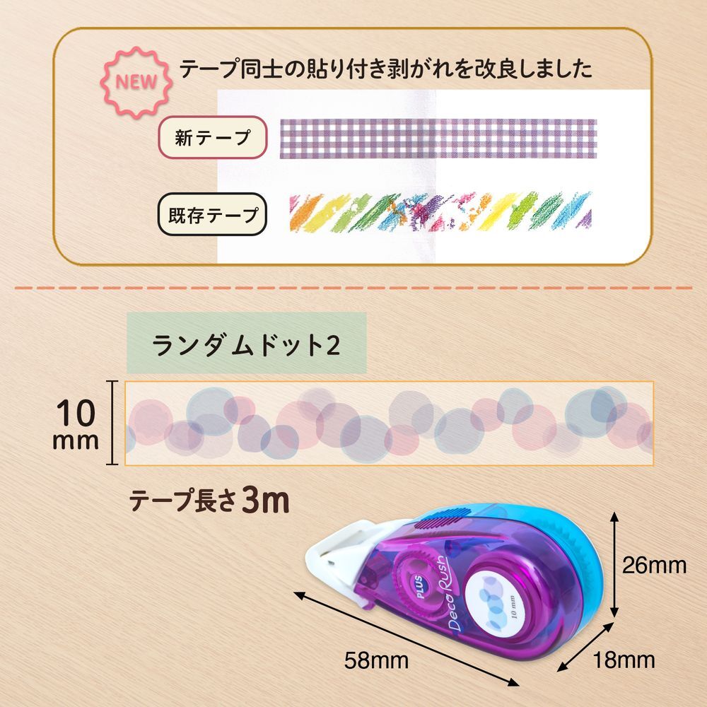 【商品名:(まとめ買い)プラス デコレーションテープ デコラッシュ 太幅タイプ 幅10mm×長さ3m ランダムドット2 DC-080-12 〔10個セット〕】