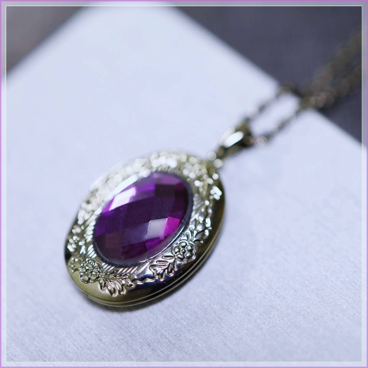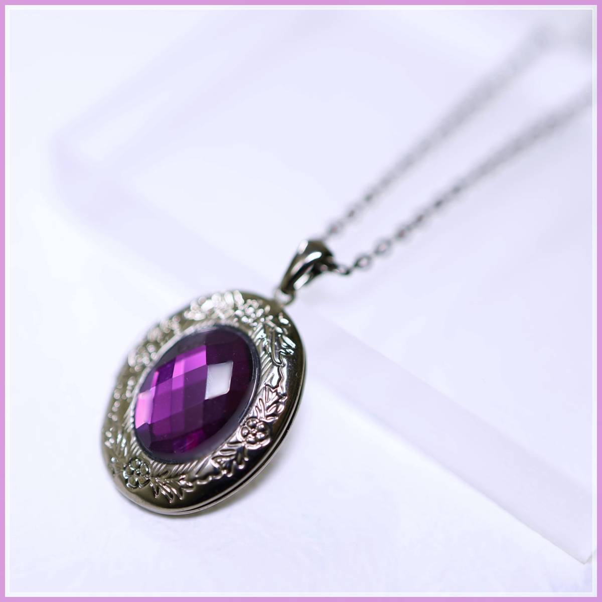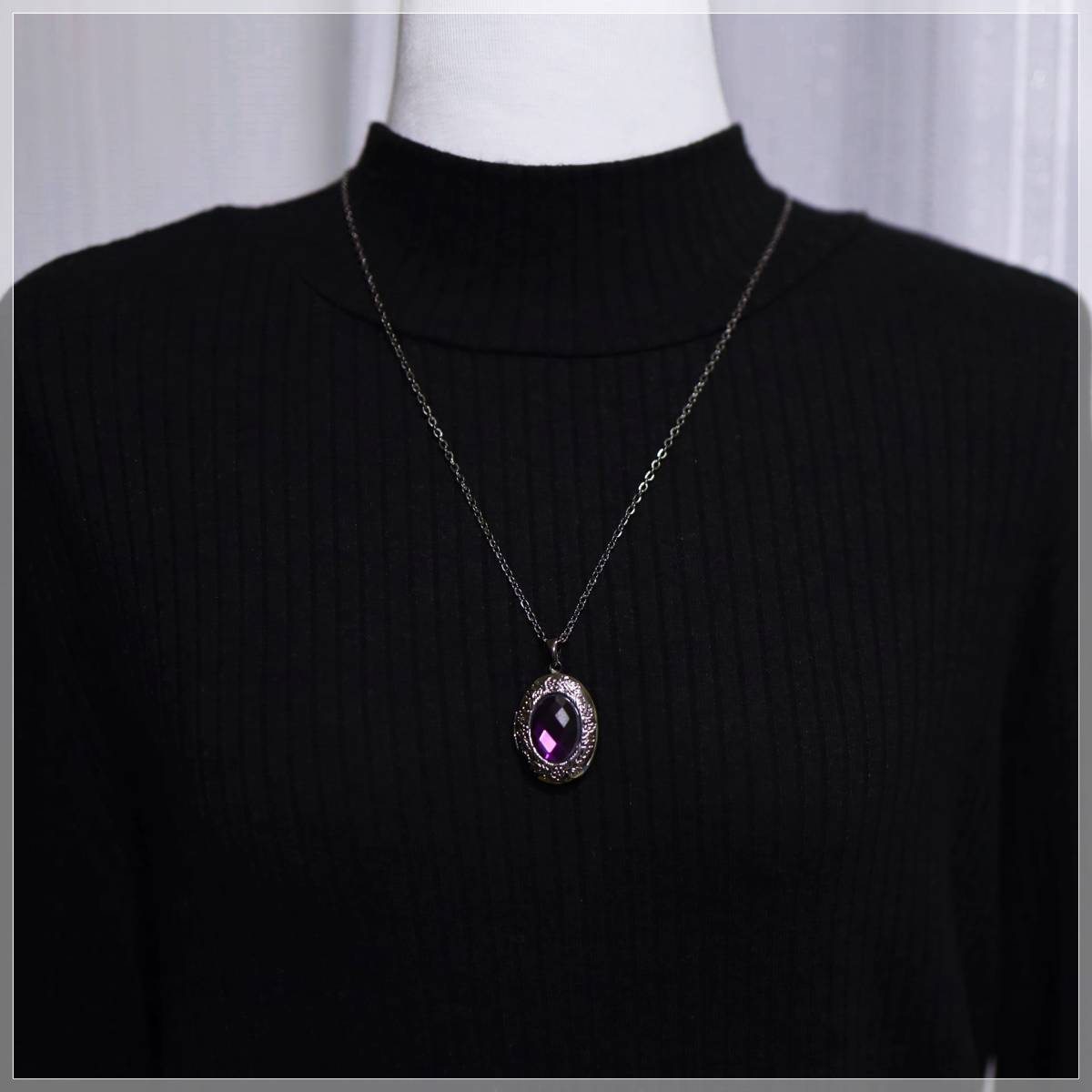 紫色のラインストーンが光り輝くロケットペンダント(ロングブラックチェーン付き)です。