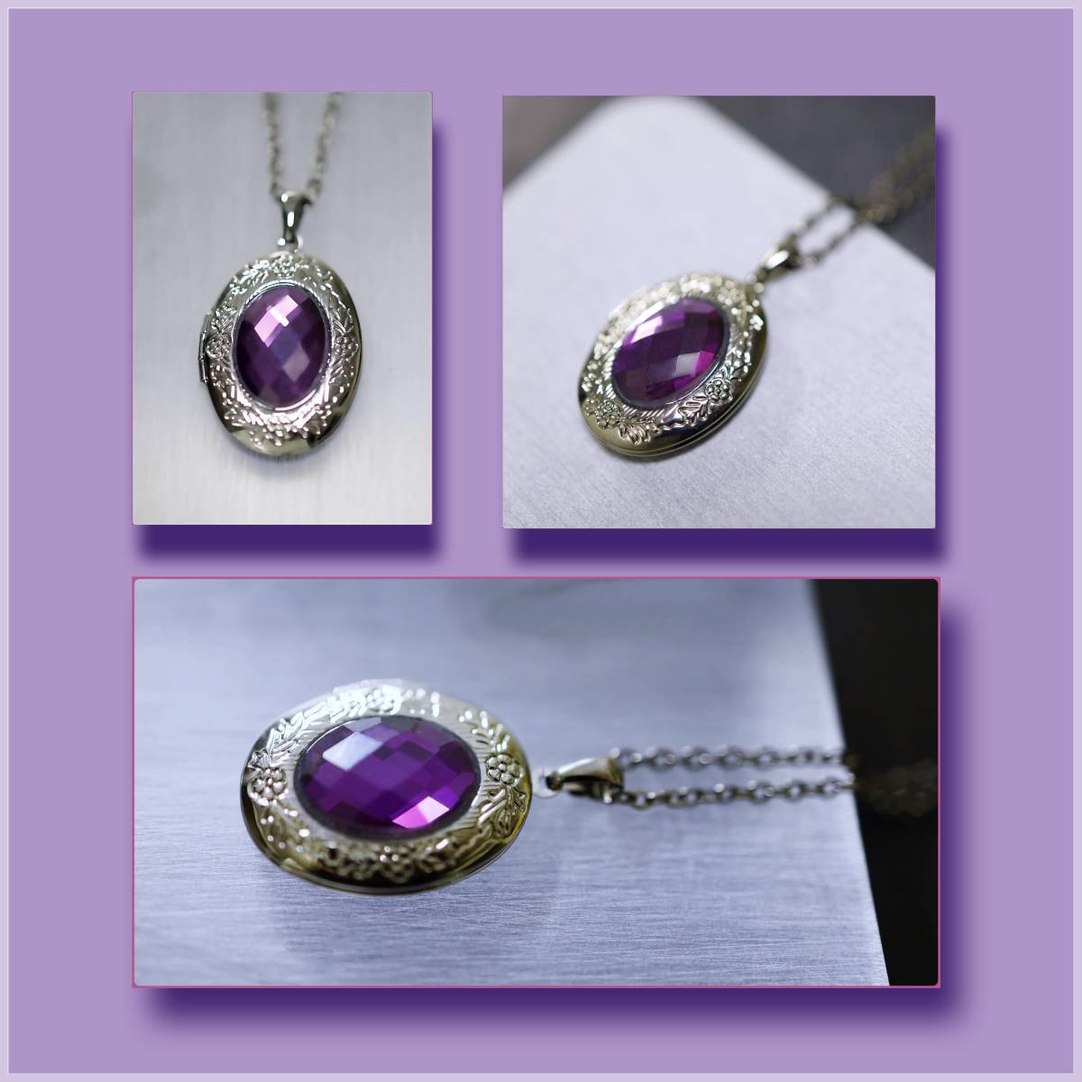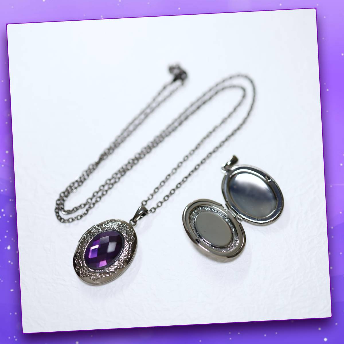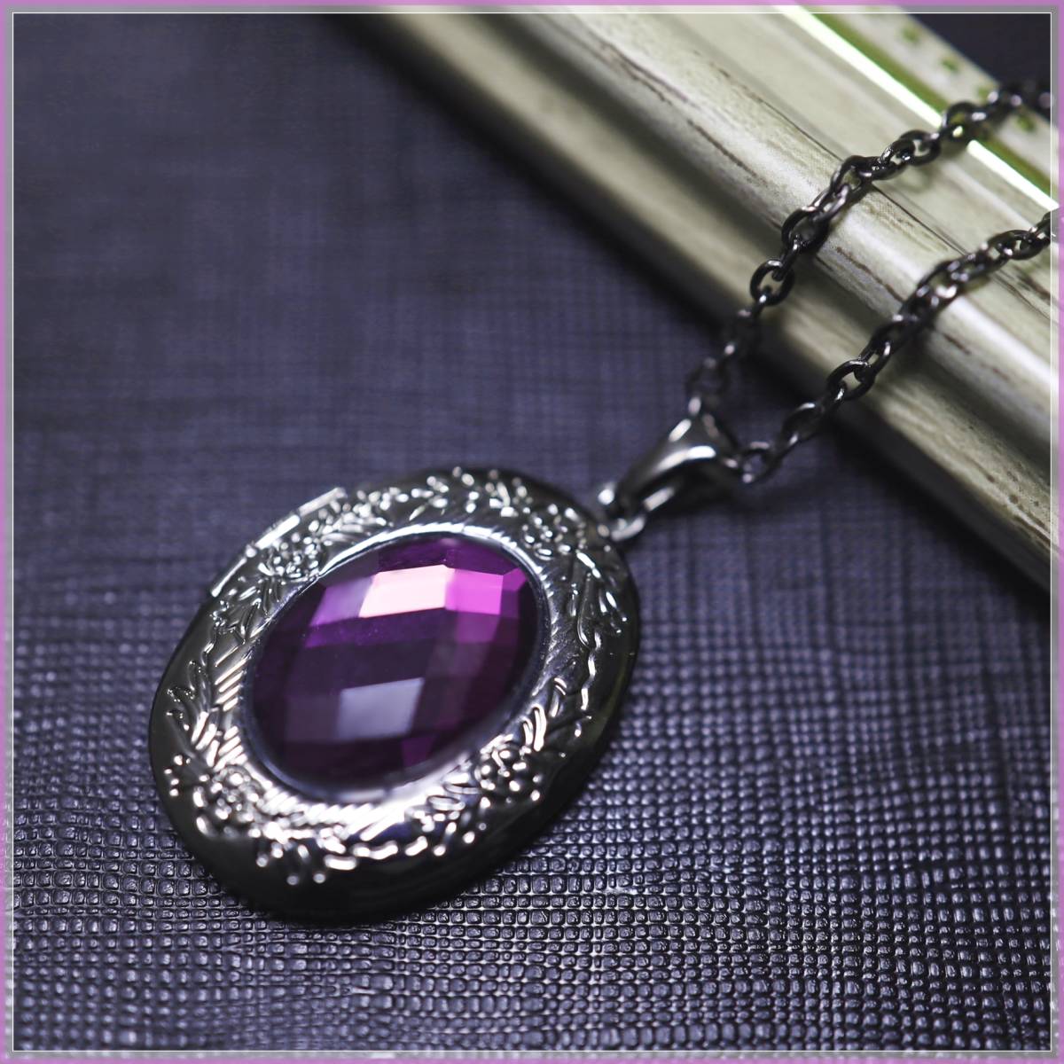 紫色のラインストーンが光り輝くロケットペンダント(ロングブラックチェーン付き)です。