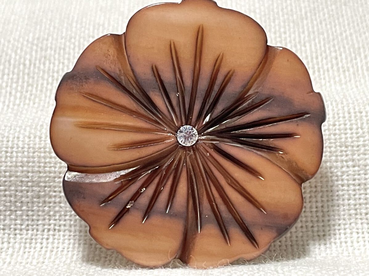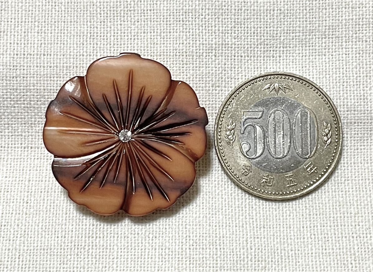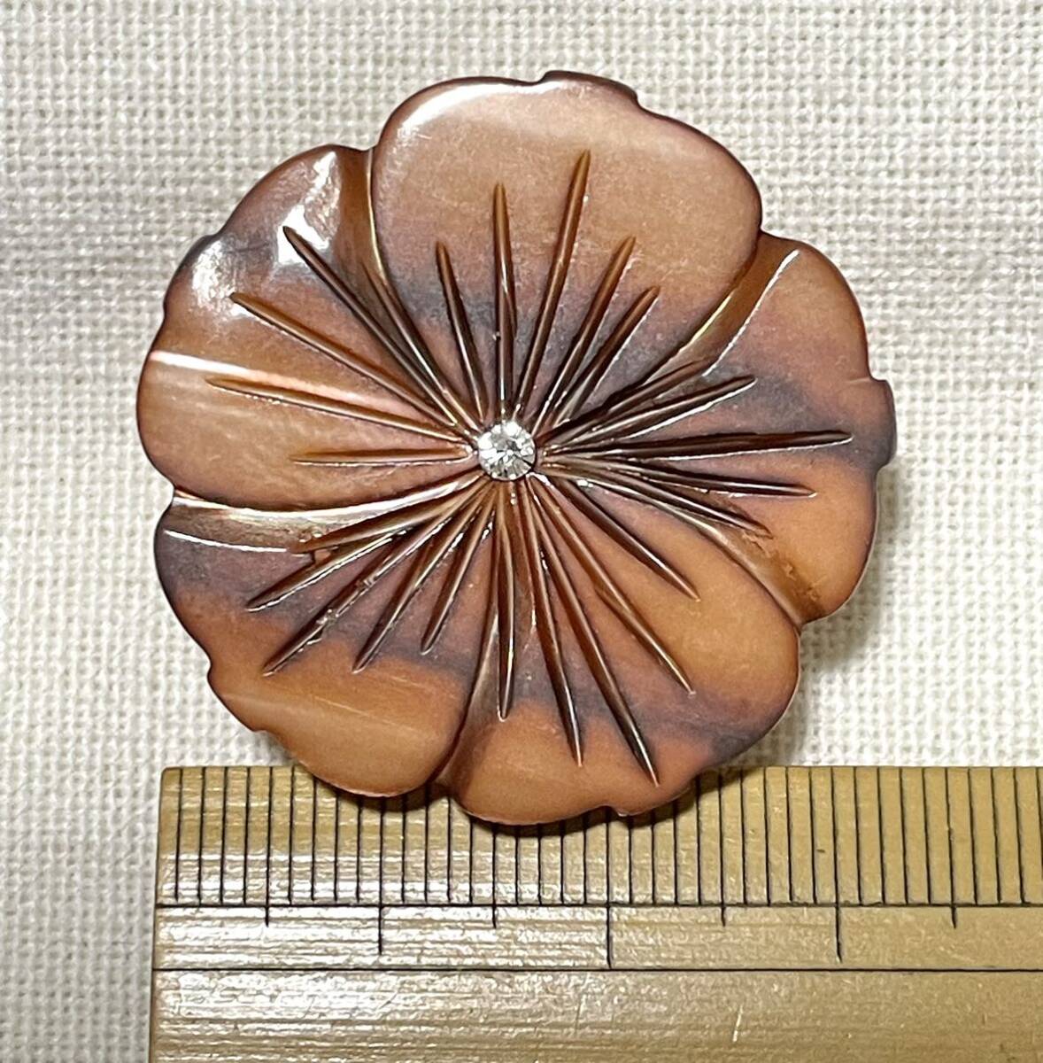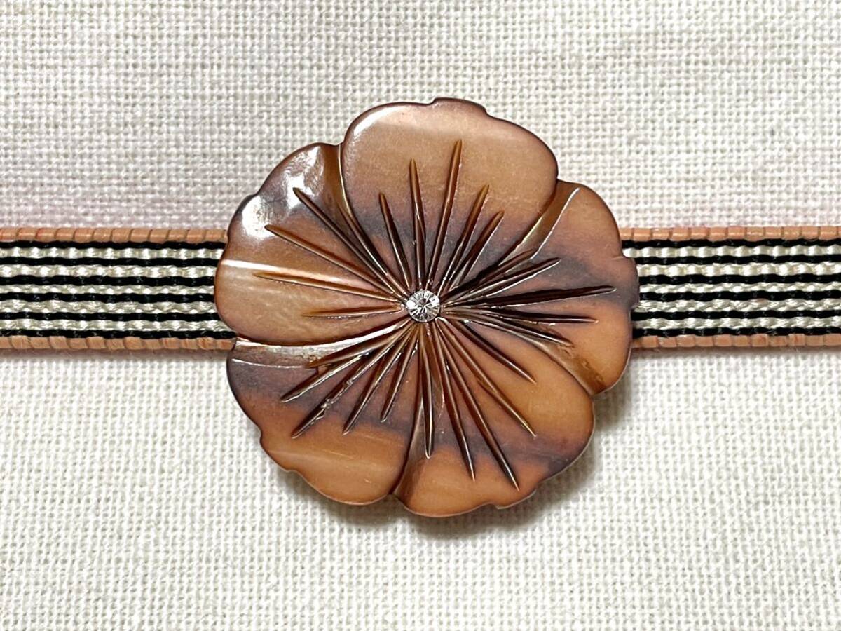お花デザインの天然貝のパーツを、帯留めにリメイクしました。