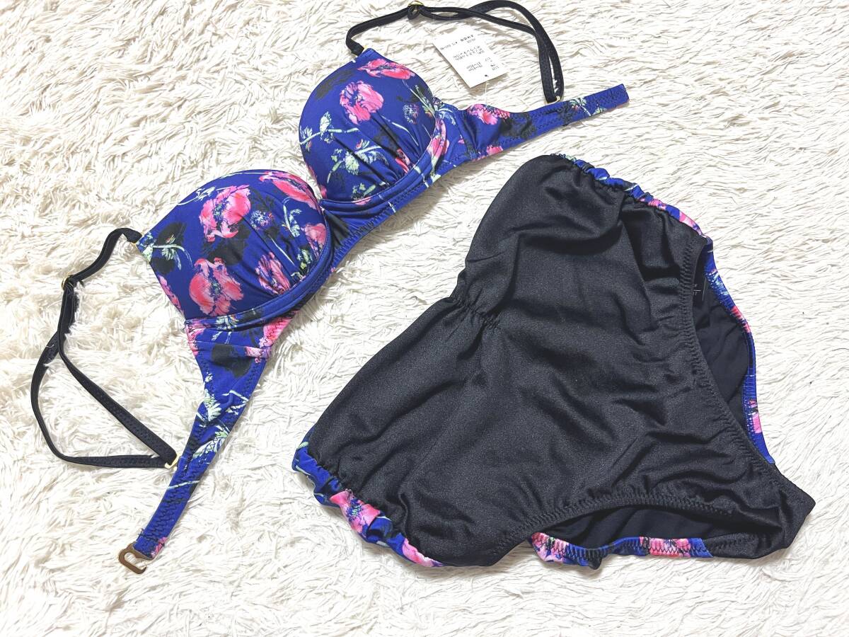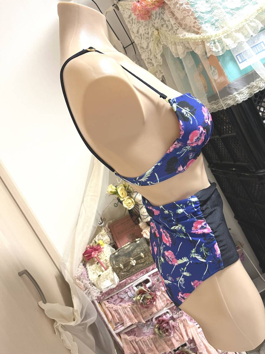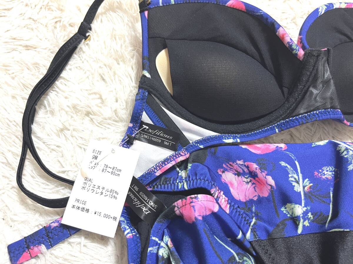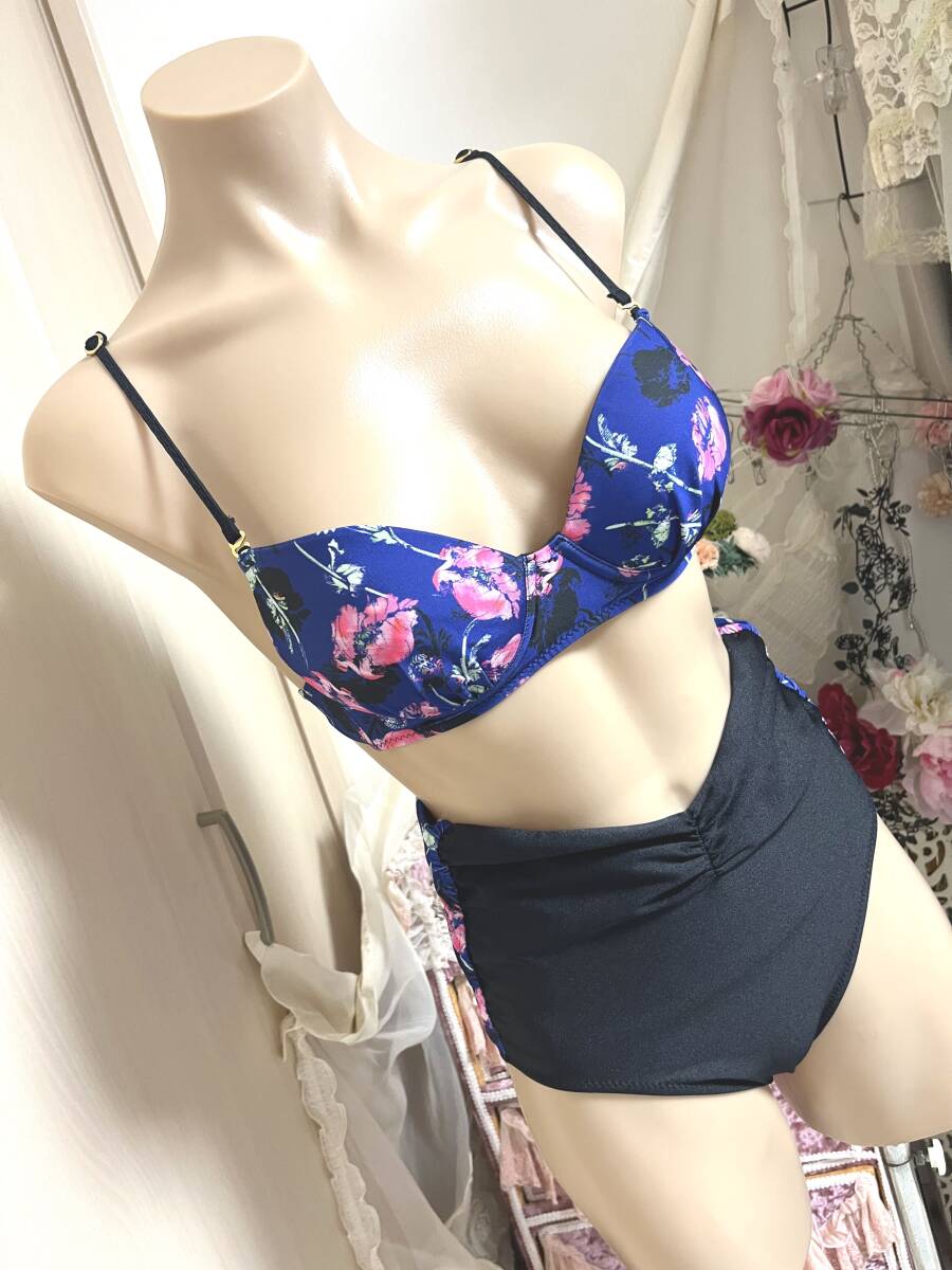 レディース水着9Mサイズ:ミューラーン【Defilious】日本製◆ワイヤービキニ/レモンパット/ハイウエスト水着パンツ:青紺 定価15,000+税