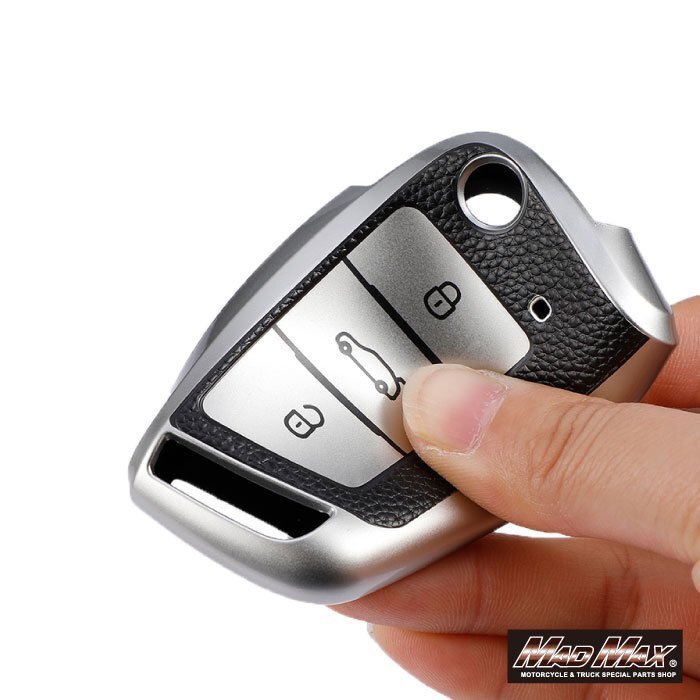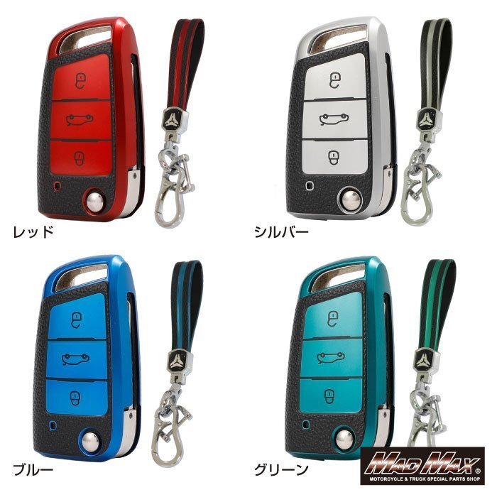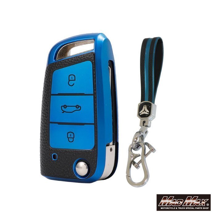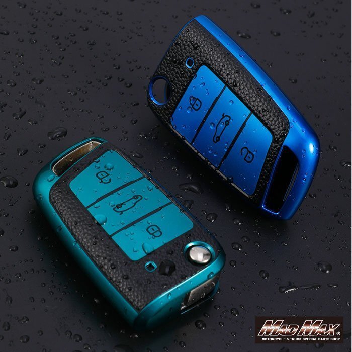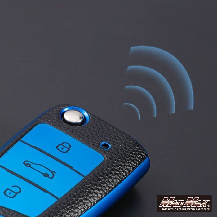 フォルクスワーゲン専用 レザー調 TYPE E 3ボタン式 TPUソフト スマートキーケース ブルー