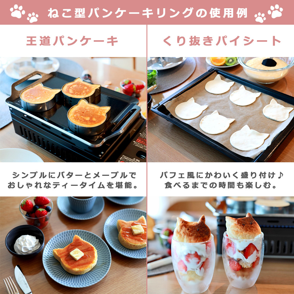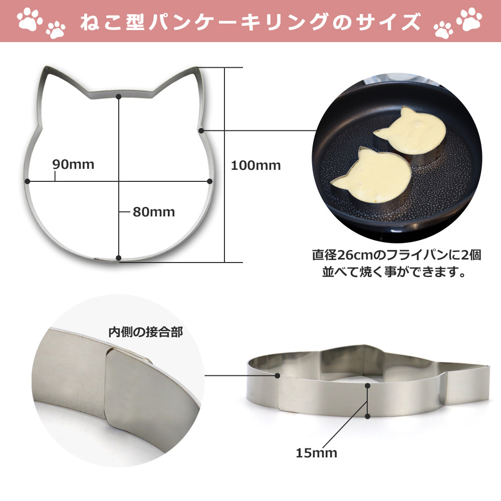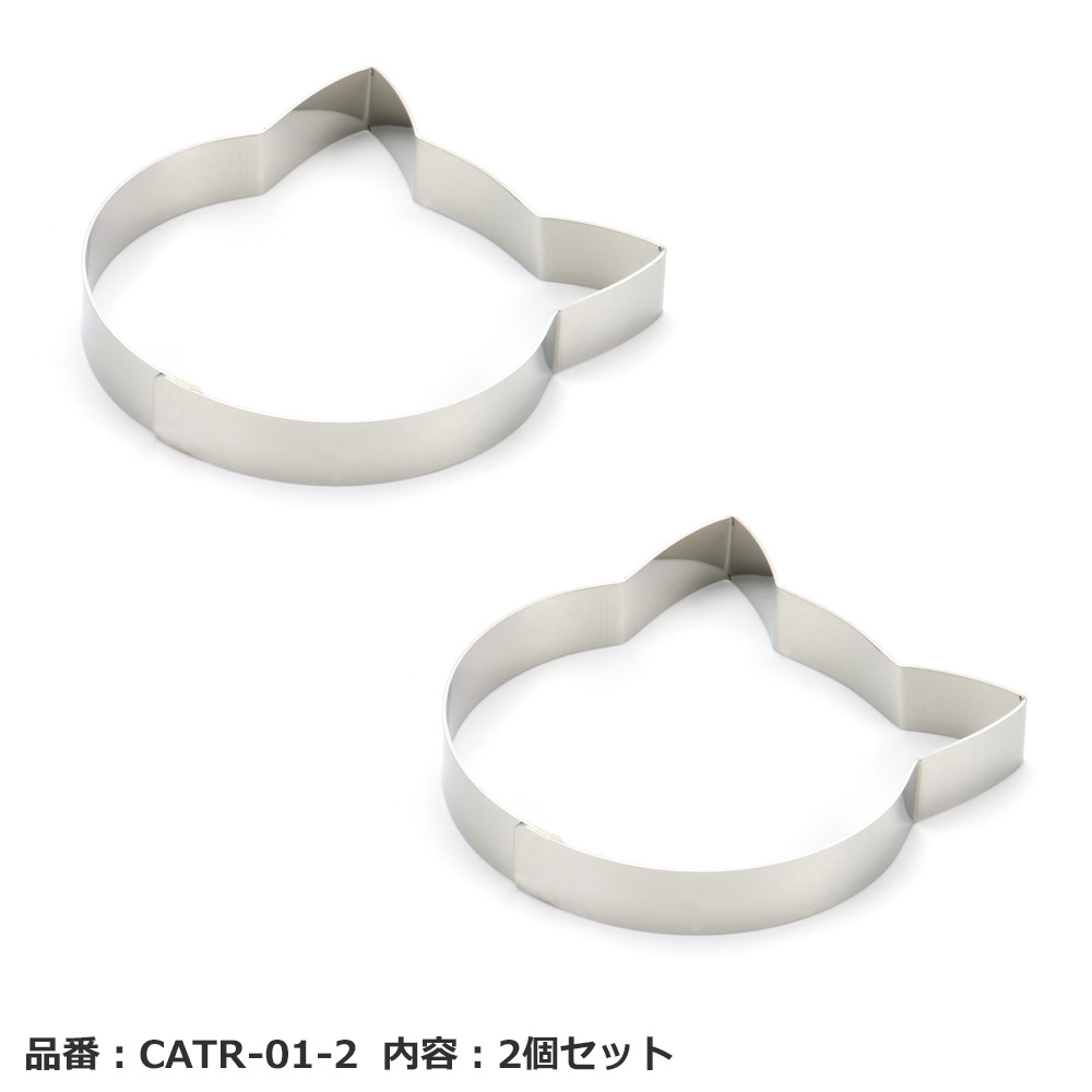 パンケーキリング セルクル 猫型 ステンレス 目玉焼きリング 浅型 製菓用品 お菓子づくり ねこ 型枠 2個セット CATR-01-2