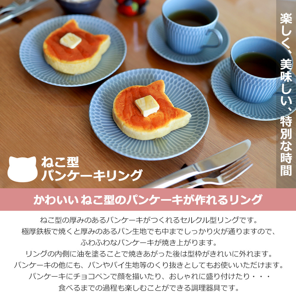 パンケーキリング セルクル 猫型 ステンレス製 目玉焼きリング 浅型 製菓用品 お菓子づくり ねこ 型枠 CATR-01-1