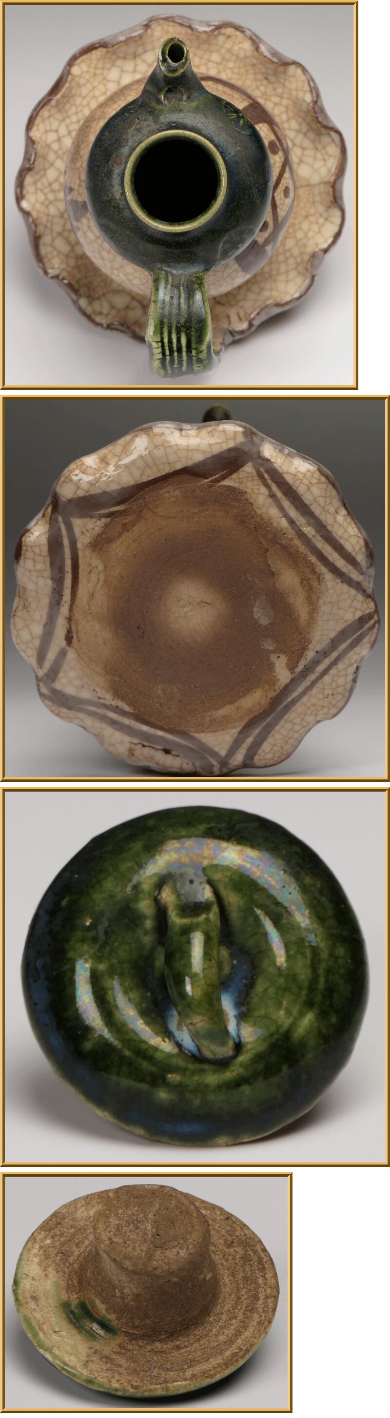 江戸末期から明治期に造られた、織部焼の秉燭(ひょうそく)と云う小型の灯火器です。
