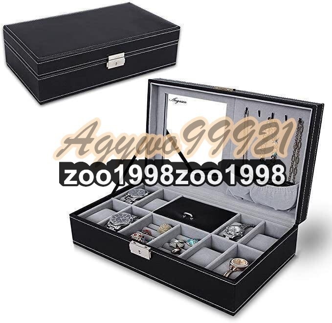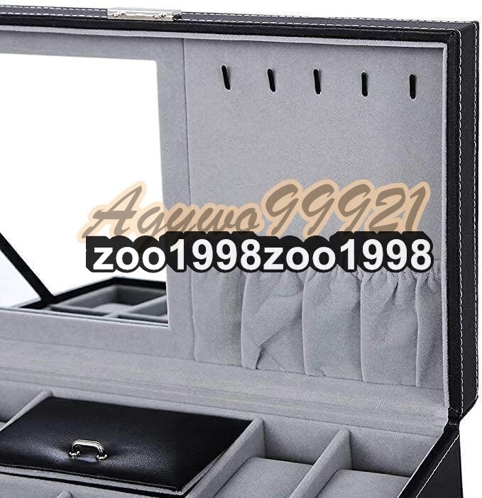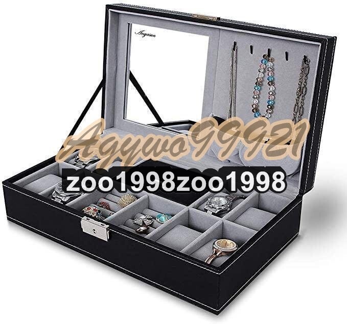 内部容量:8本腕時計収納、アクセサリー収納?指輪?イヤリング?ネックレス?ブレスレット?ピアス等のジュエリーのアクセサリー用小物入れ 内部の収納部分は大事なアクセサリーを傷めないようにソフトなグレーフランネルで作られています。 ミラーが付いていますので、ピアスを装着するときやちょっとした身だしなみを確認 する際に非常に便利です。 また、便利な鍵付き、大切な腕時計やメガネを守るコレクションケースです。" 海外インポートなので、細かいホツレや汚れが有る場合がございます。そして,宅配便で発送しますので,箱付きの商品は角部分が凹む可能性がございます。ご理解の上ご購入ください。