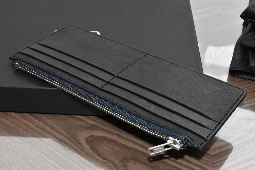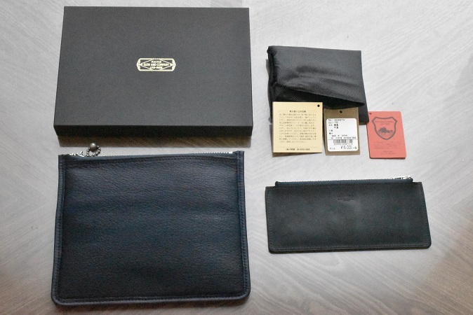 メイドインジャパン(表示あり)、本体の仕様はファスナー開閉、カードケースの仕様は小銭×1(ファスナー)、カード×6、素材はレザーなど、素人採寸ですが本隊サイズはH17×W21(最長部計測)、専用箱付未使用、購入時の定価1万7600円(表示あり)です。