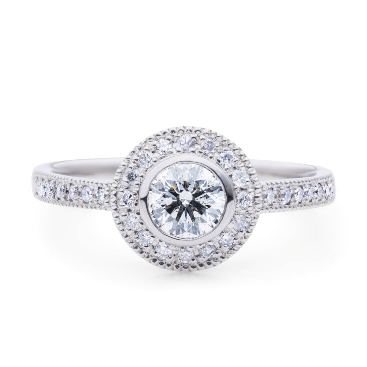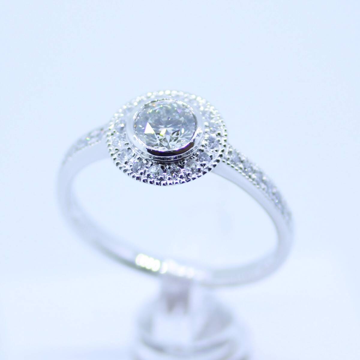 世界の名だたるジュエラーがこぞってラインナップに取り入れている今最も流行となっておりますHaloデザインにて、お作りさせて頂きました。