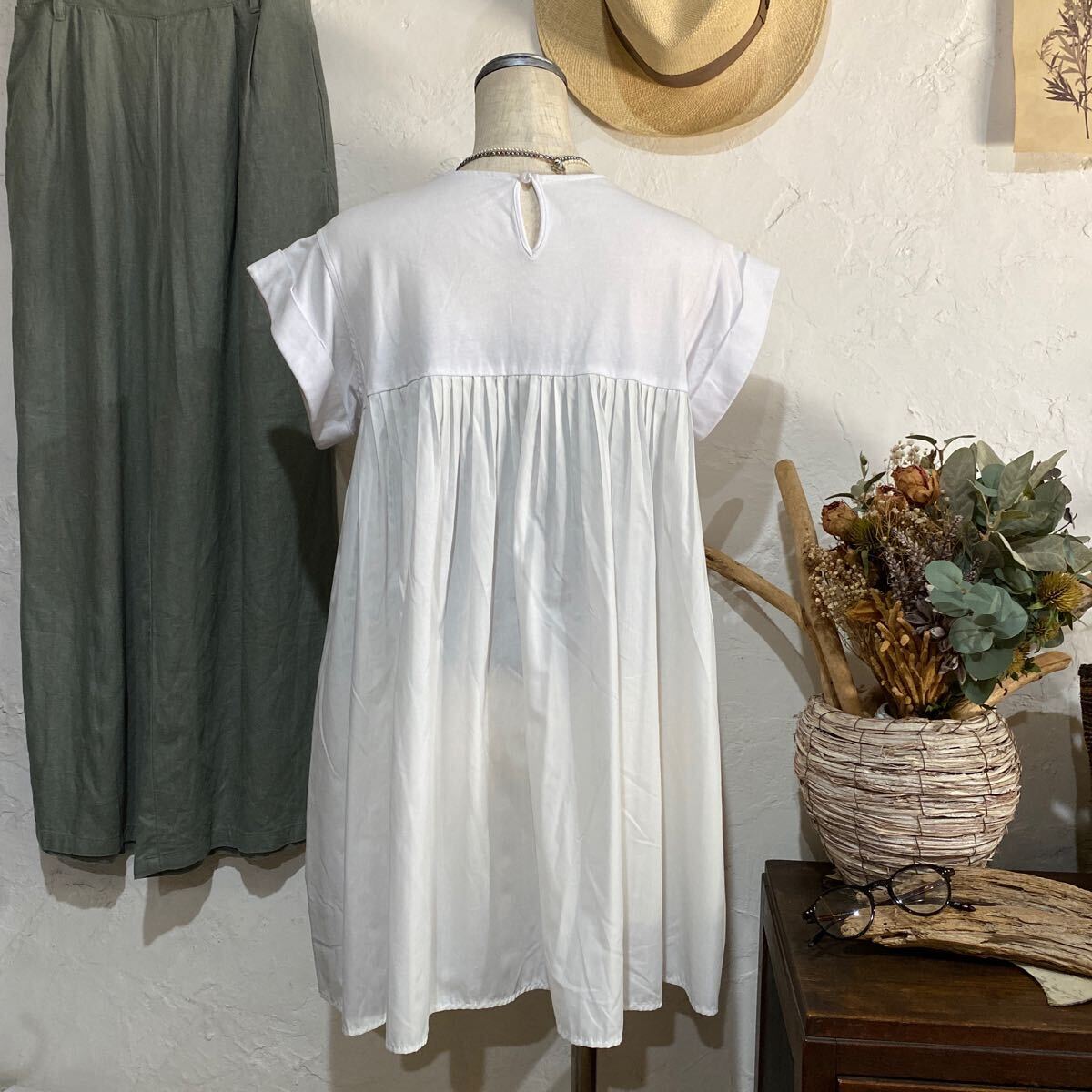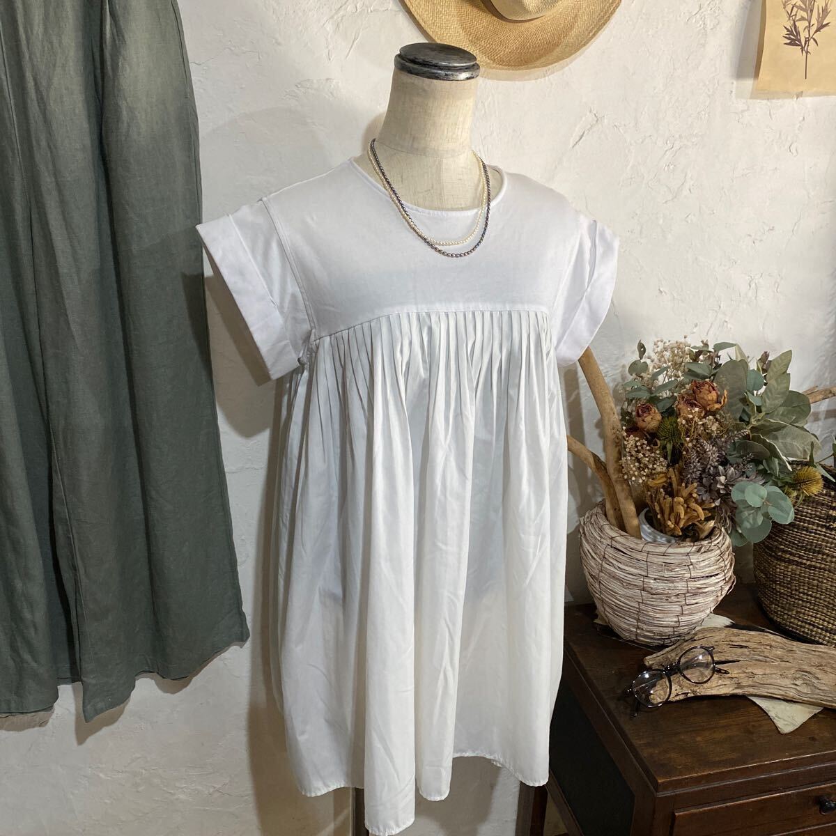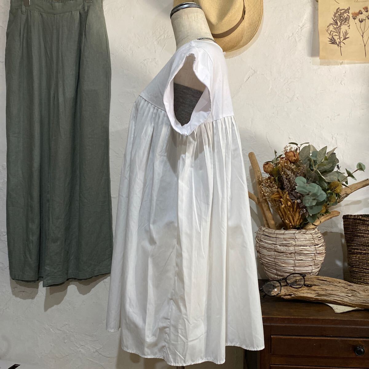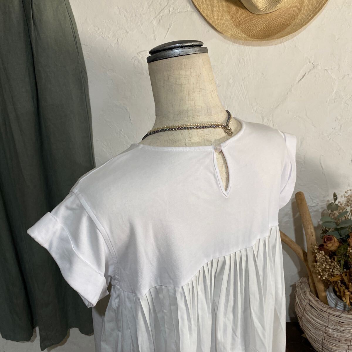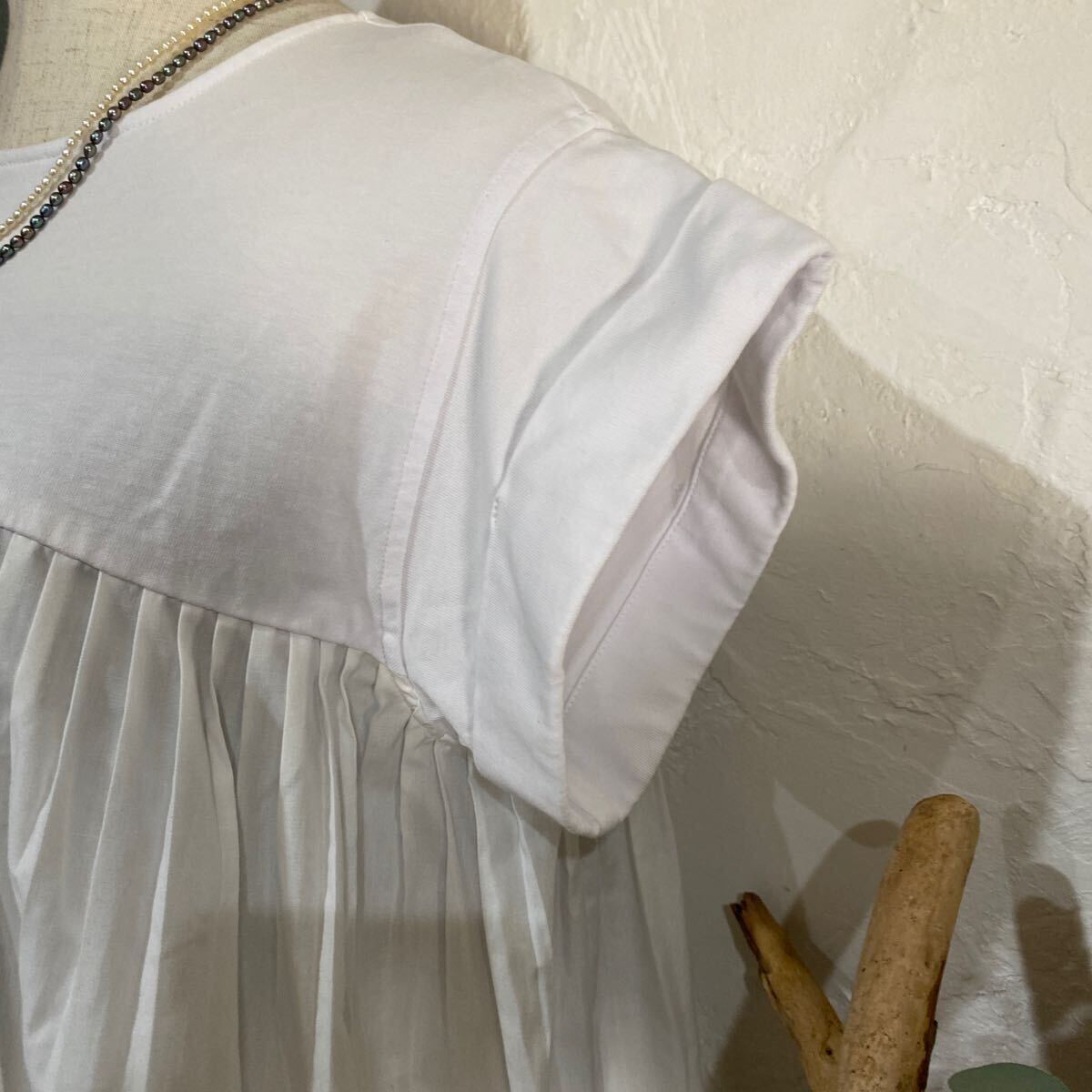 素材:カットソー100%、プーリーツ部分:ポリエステル89%、コットン12%