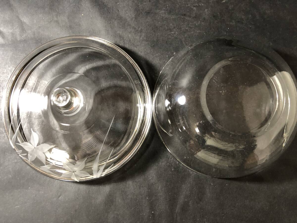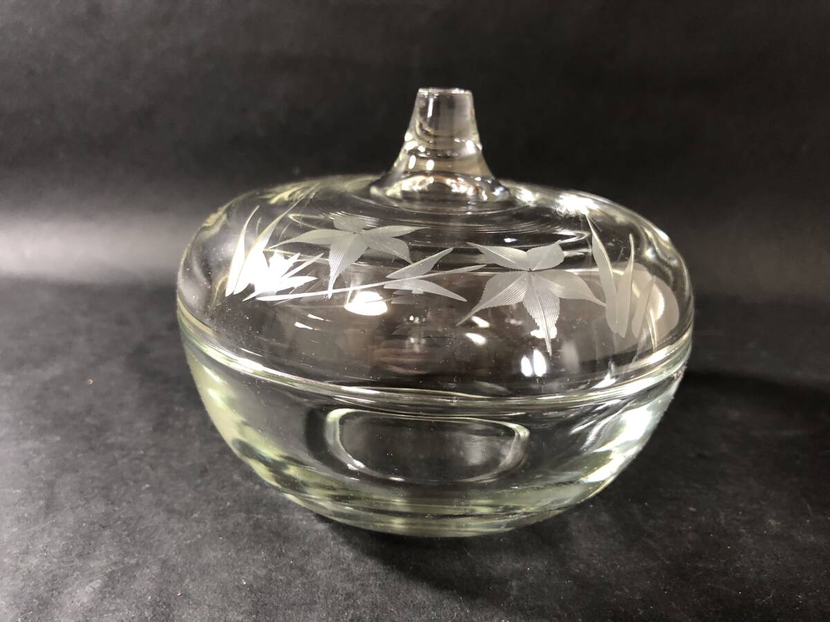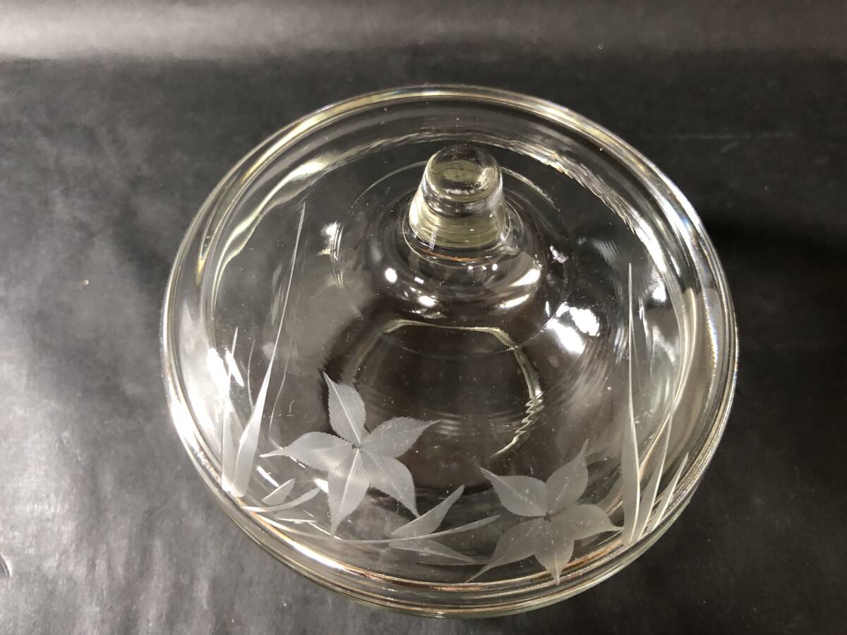 昭和レトロ レトロガラス ガラス蓋物 桔梗の花エッチング文様 生活雑貨 レトロガラス