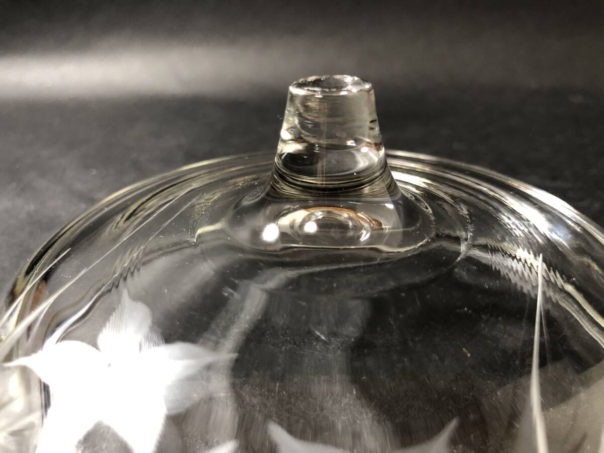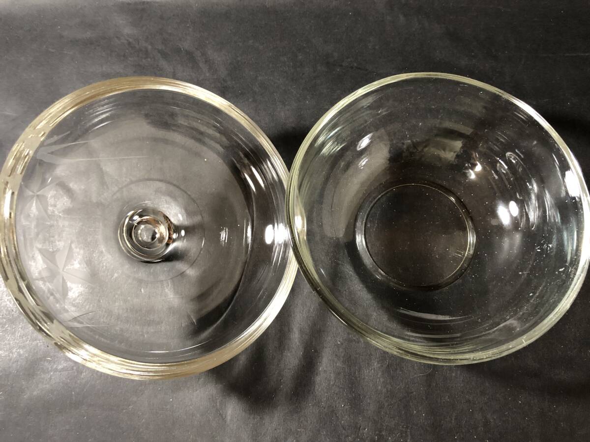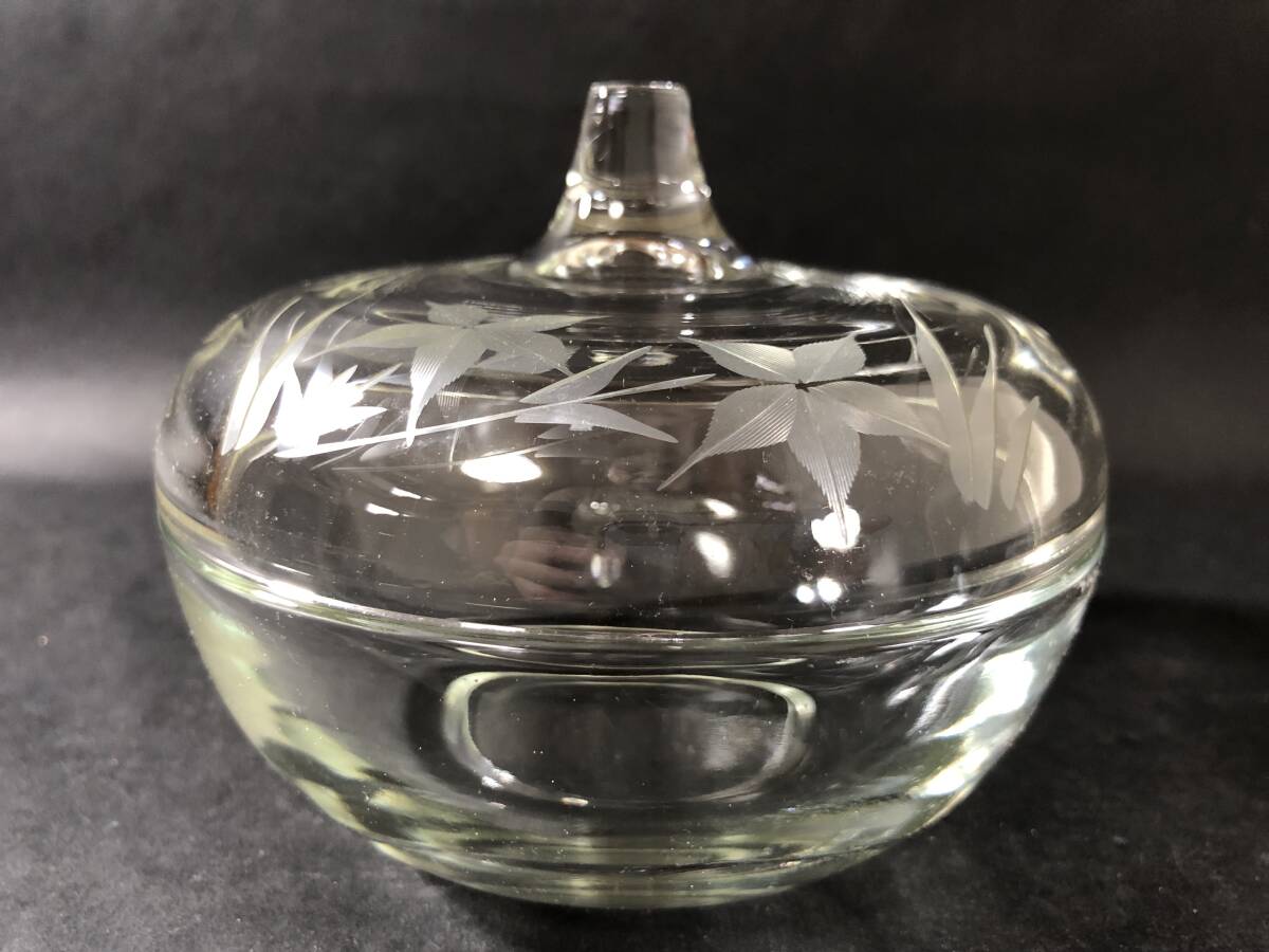 昭和レトロ レトロガラス ガラス蓋物 桔梗の花エッチング文様 生活雑貨 レトロガラス