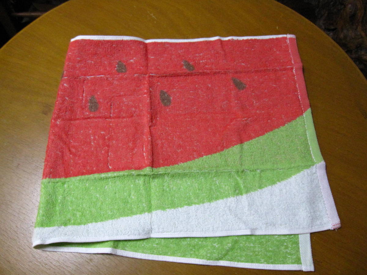 優しい色合いの可愛いスイカ柄! 全面に大きなスイカの絵で、珍しくユニークなデザイン