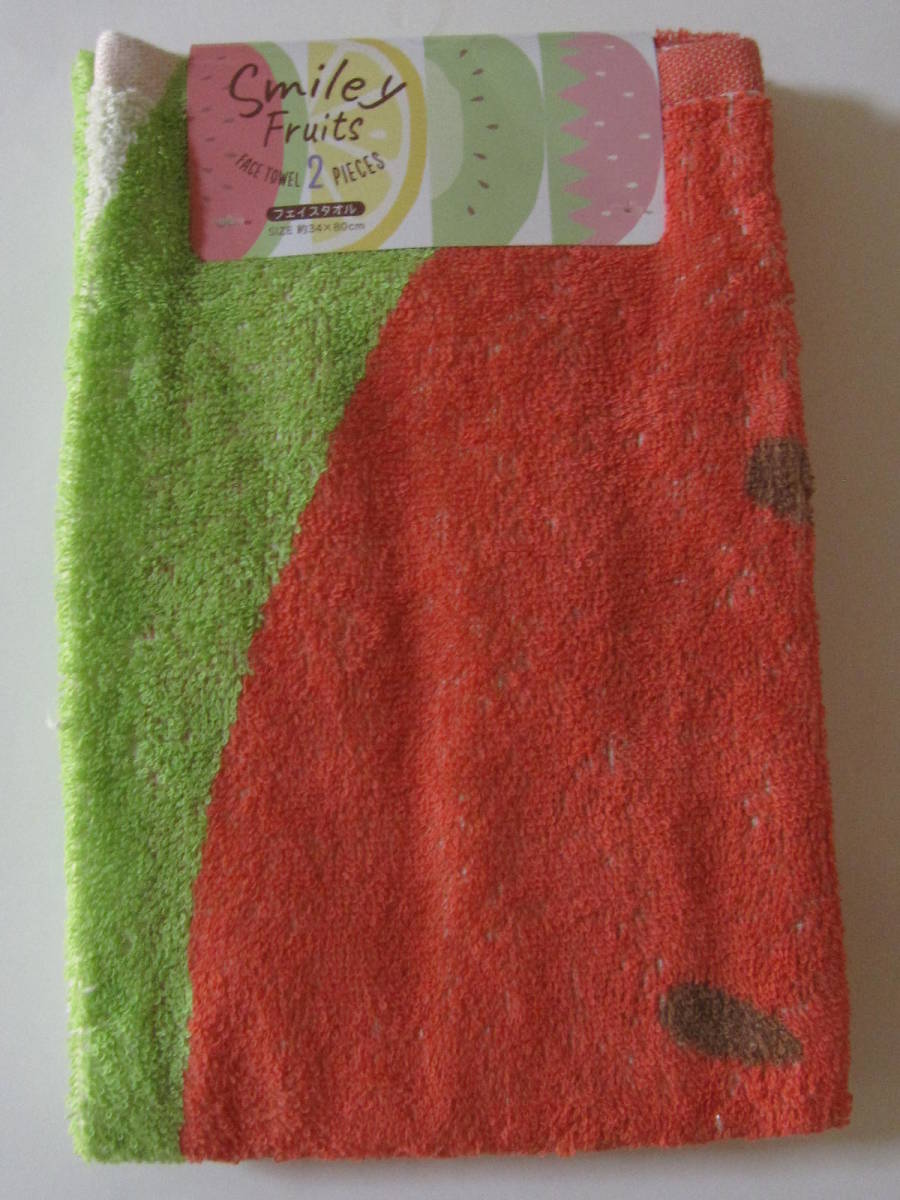 フェイスタオル 新品 2枚 西瓜 スイカ 果物柄 模様 セット 男女 兼用 オーガニック 厚 可愛 お洒落 家庭 祝 春 夏 秋 冬 格安 ジャガード