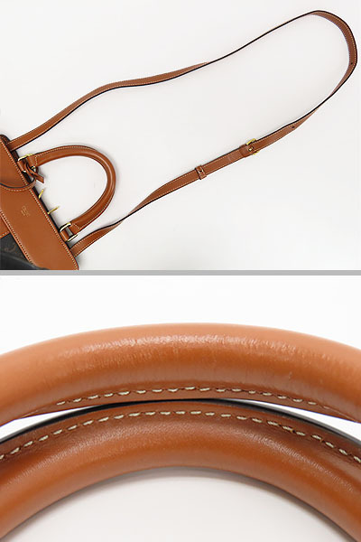 商品状態 | 外側開口部のレザーに若干の薄スレ、ロゴの薄れ、開口部のコバコーティングに極わずかな薄スレや小キズ、ショルダーストラップにシワや調節穴にわずかな裂け、ファスナープル金具に微細な薄キズがございますが、使用感少なくとても綺麗なお品物になります。 |