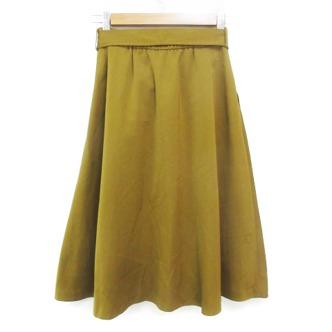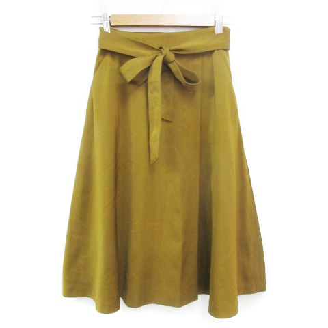 ナノユニバース nano universe フレアスカート ミモレ丈 リボン付き 無地 F 茶 ブラウン /FF39 レディース