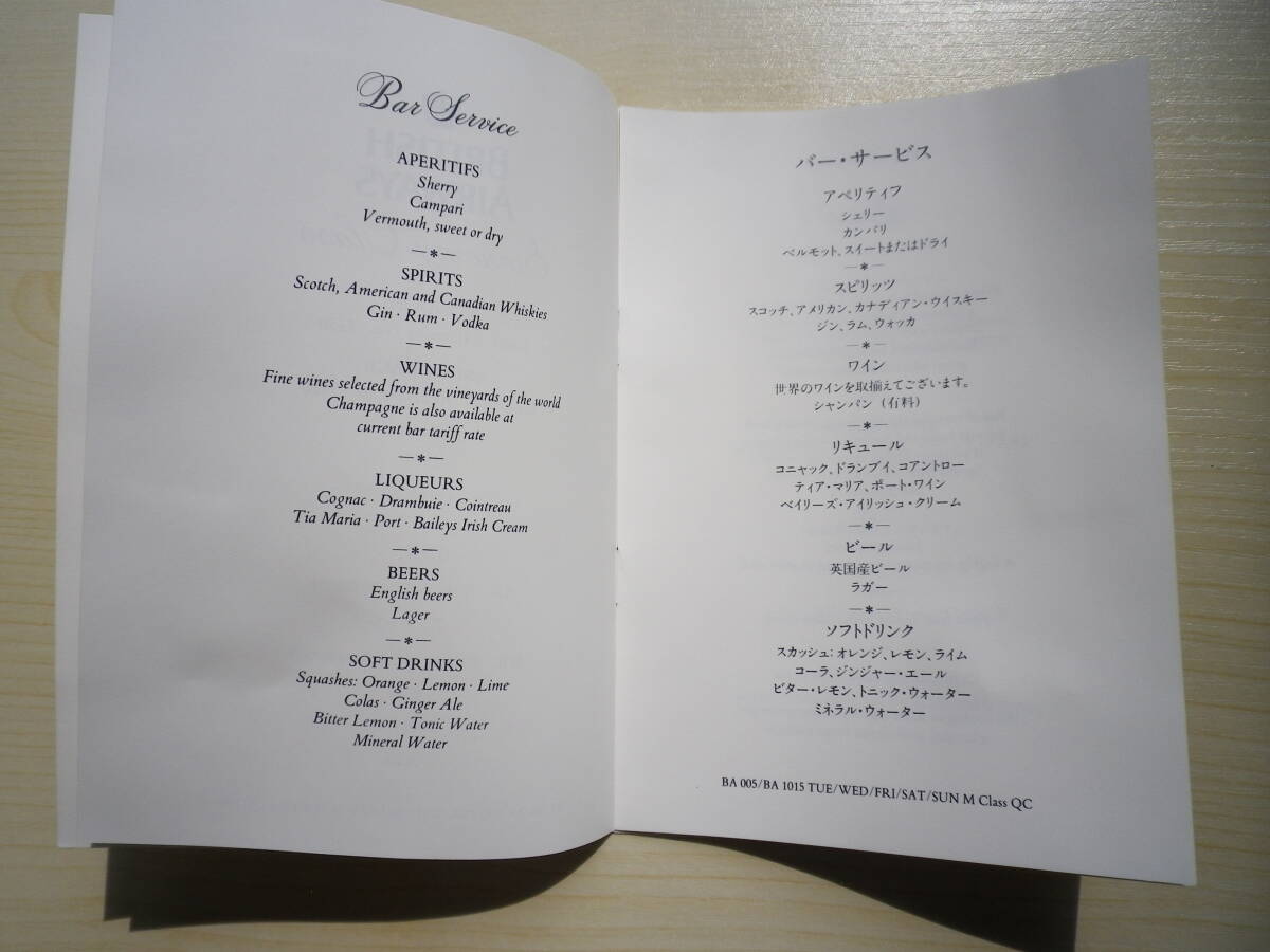 ☆★『BRITISH AIRWAYS 機内食メニュー表』★☆ | |