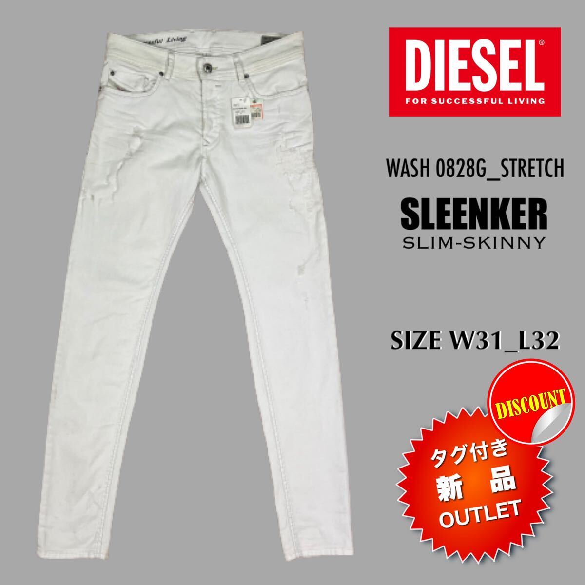 【DIESELタグ付き新品☆送料込み即決OUTLET価格!!】ディーゼル SLEENKER 訳ありアウトレット品 クラッシュ加工 スキニー ホワイトデニム | |||