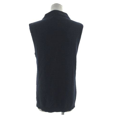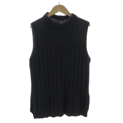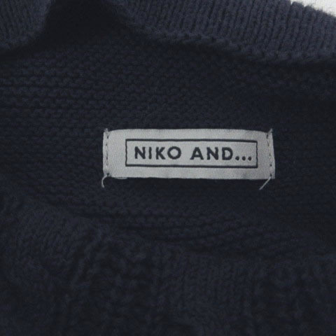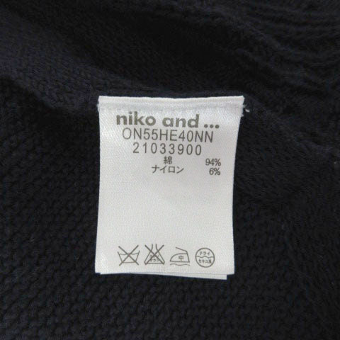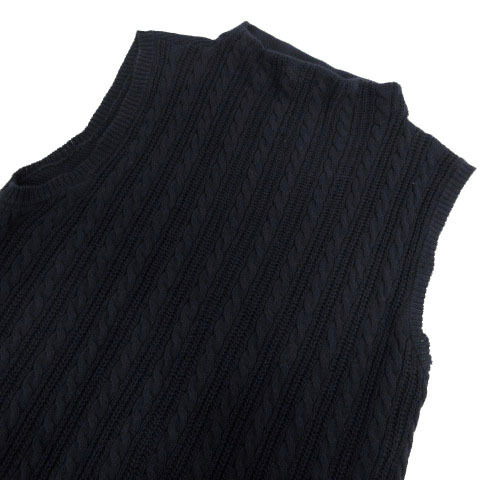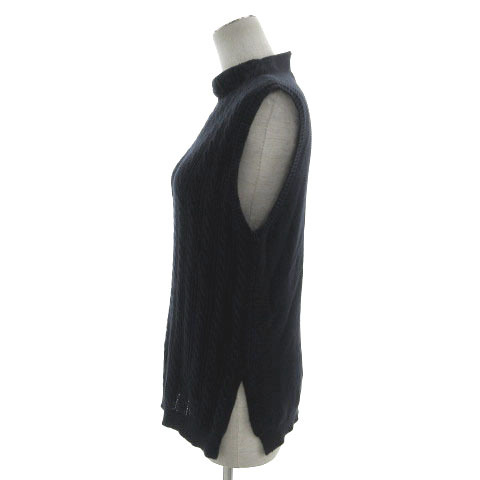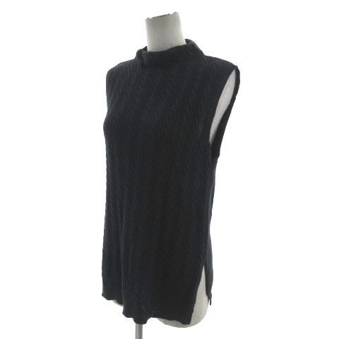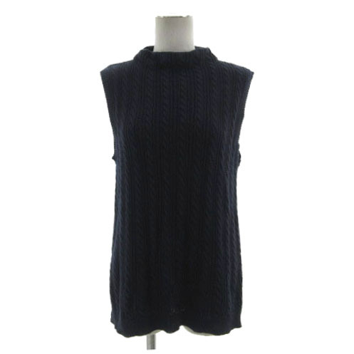 ニコアンド Niko and.. ニット モックネック ノースリーブ ケーブル編み 裾スリット コットン混 ネイビー 紺 レディース