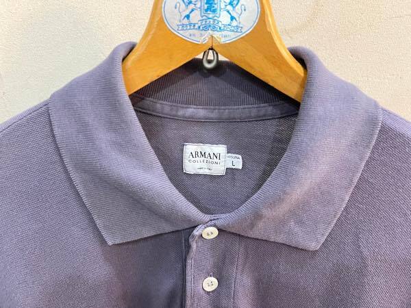 ARMANI COLLEZIONI アルマーニコレツォーニ イタリア製 size L 半袖ポロシャツ 刺繍ロゴ サイドスリット コットン グレー メンズ