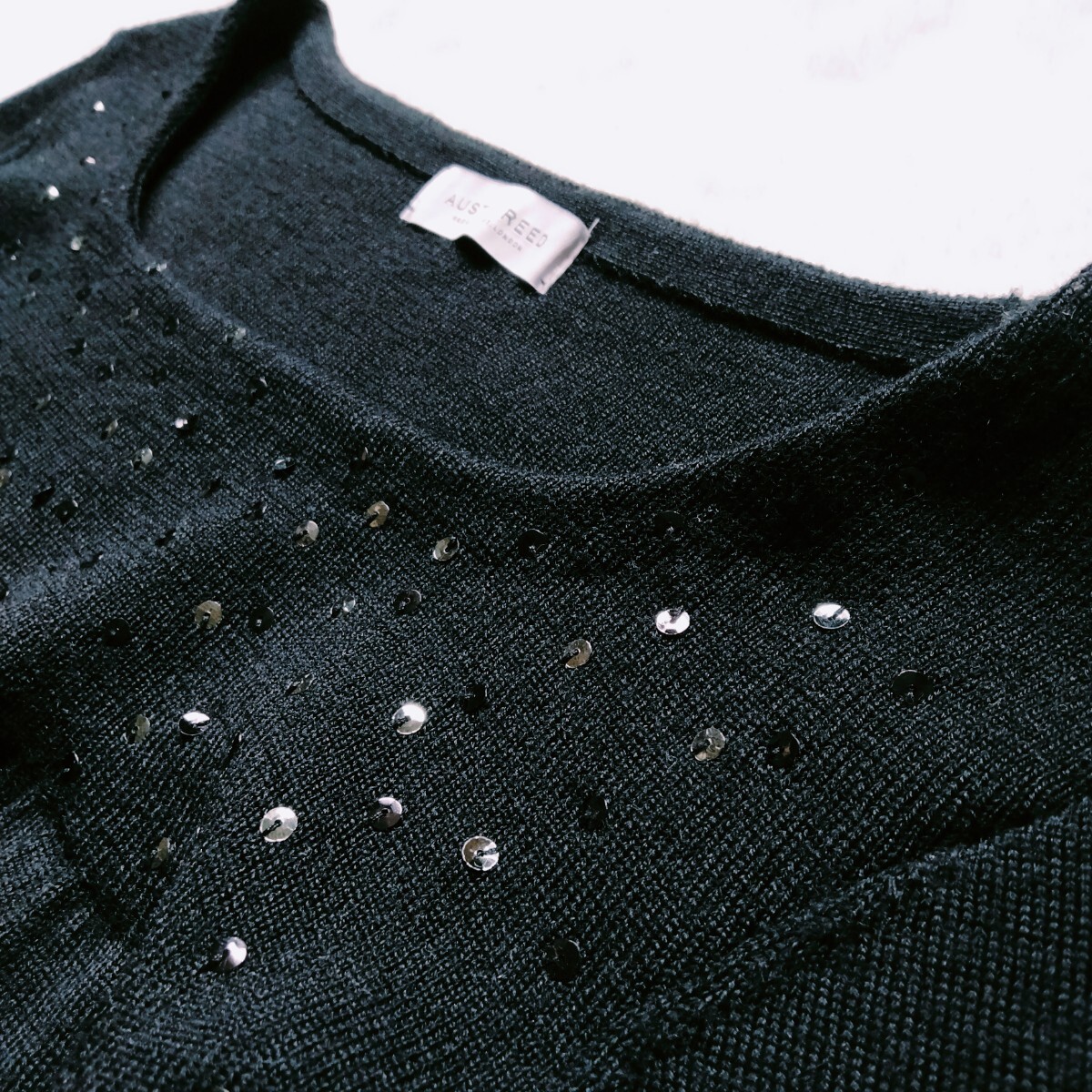 AUSTINREED オースチンリード*長袖ニット*スパンコール*黒*サイズ38*カットソー*プルオーバー*ウール100%*レディース