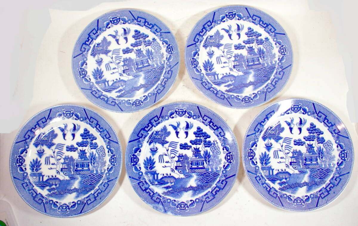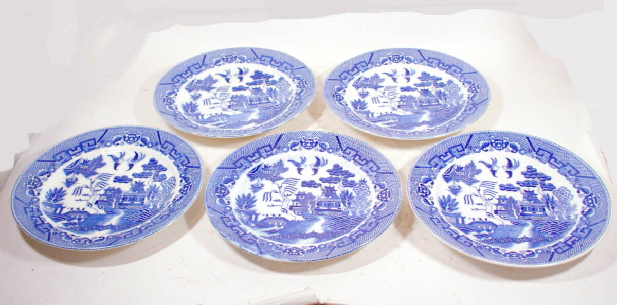 ちょい古の 中型 印判染付皿 5枚
