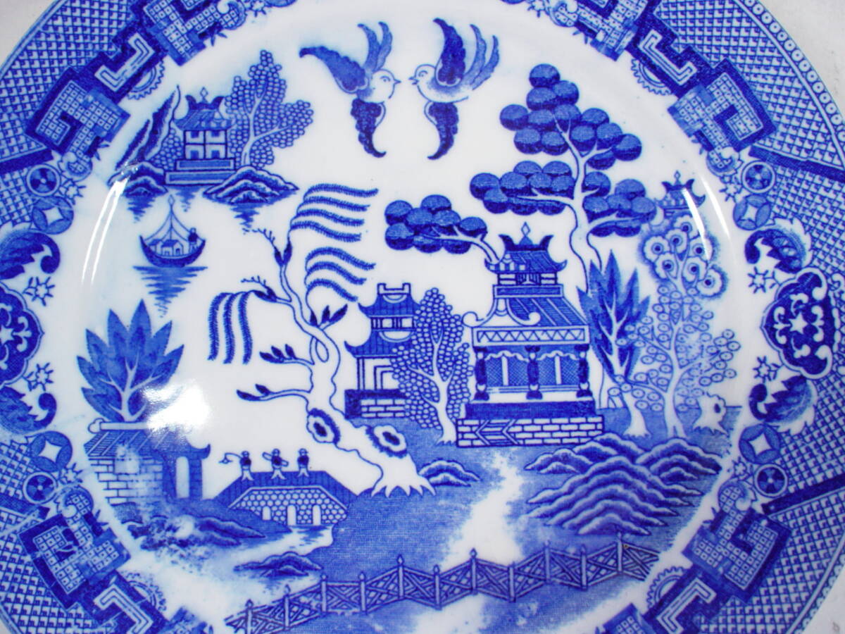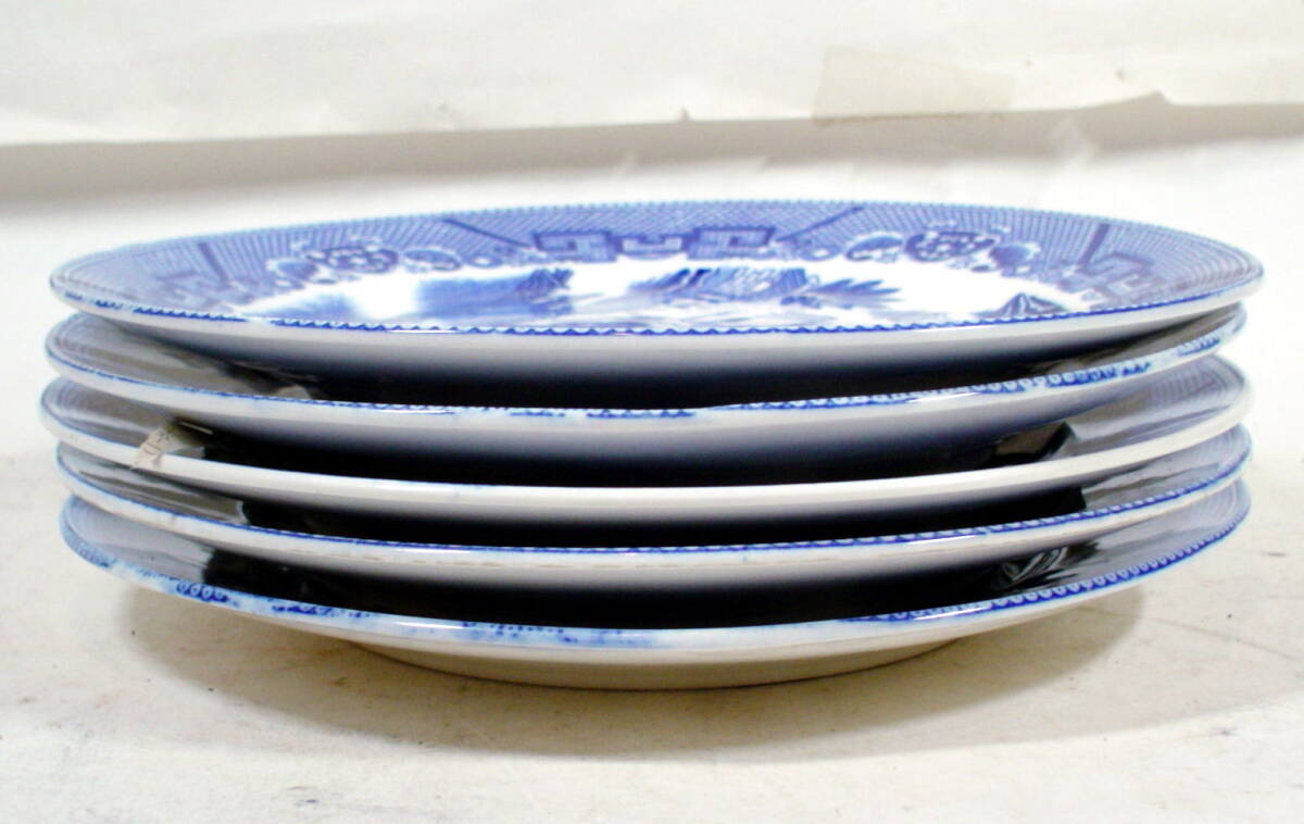 ちょい古の 中型 印判染付皿  5枚です。