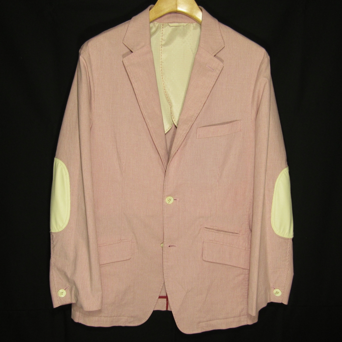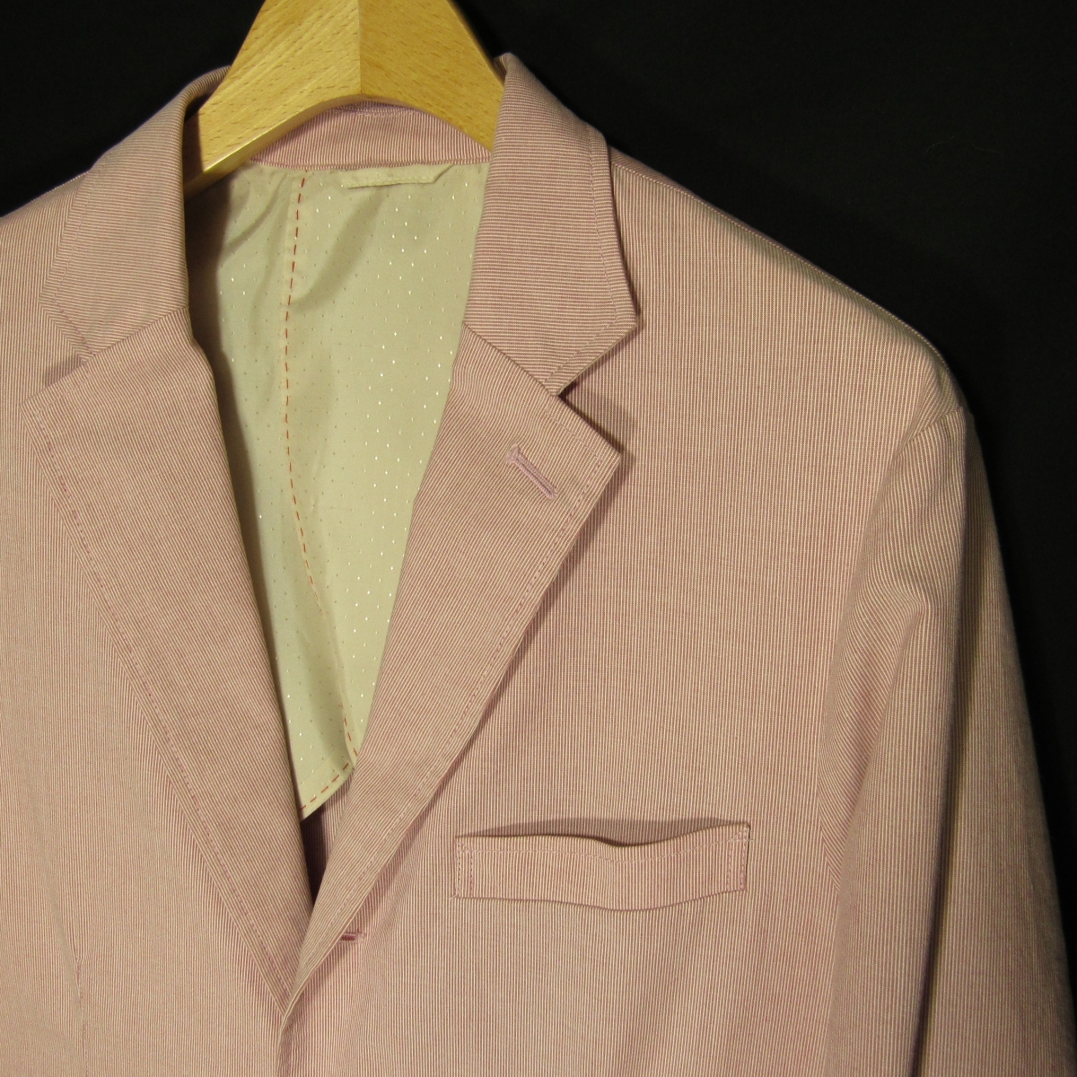 | 表記サイズ 48 (目安サイズ:ブランド公式サイトより、48=Lサイズ相当) 実寸サイズ(cm) 身幅/52.5 肩幅/46.5 着丈/74 袖丈/61 ラペル幅/7 ゆき丈/84.5 第2ボタン位置の胴幅/49.5 |