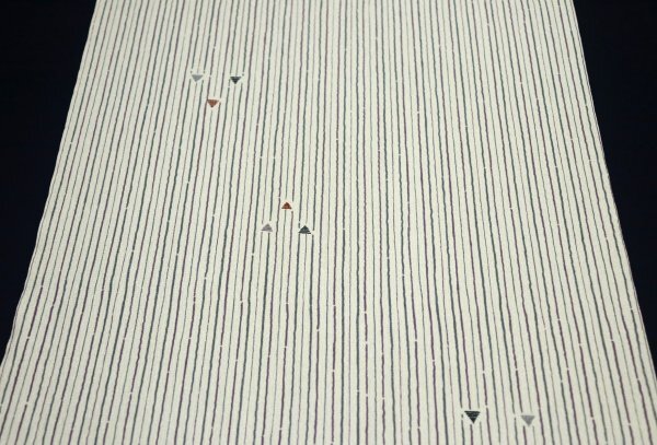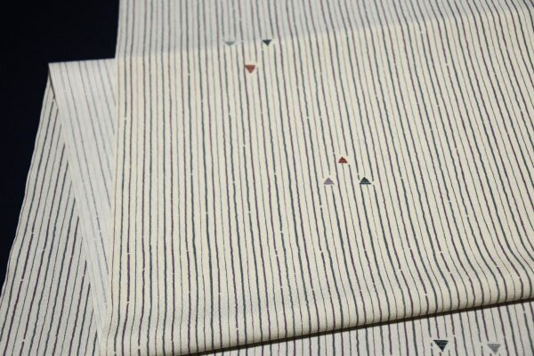 | 【京わぎれ】東レ シルジェリ― 縞ちりめん小紋 はぎれ よろけ縞にウロコ文様 薄地味クリーム地 約5m ① | ||||