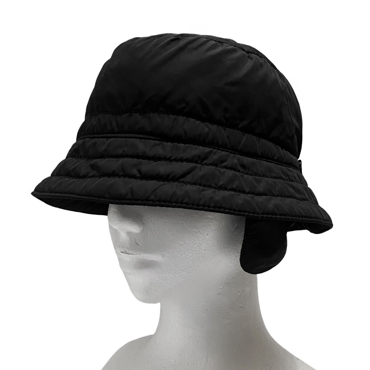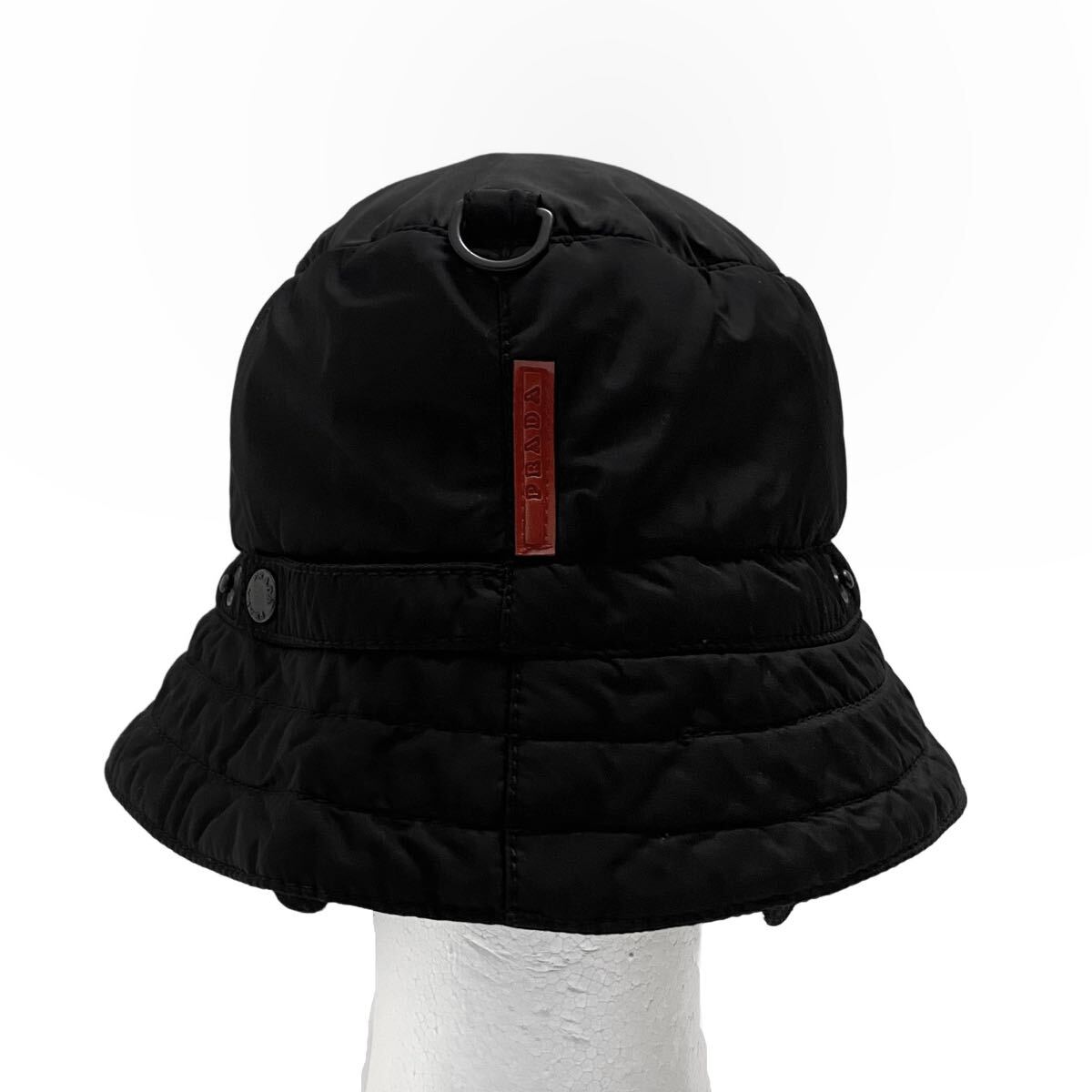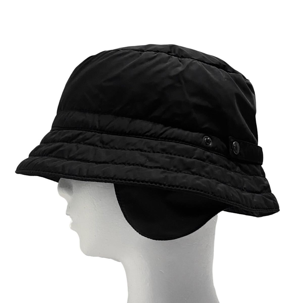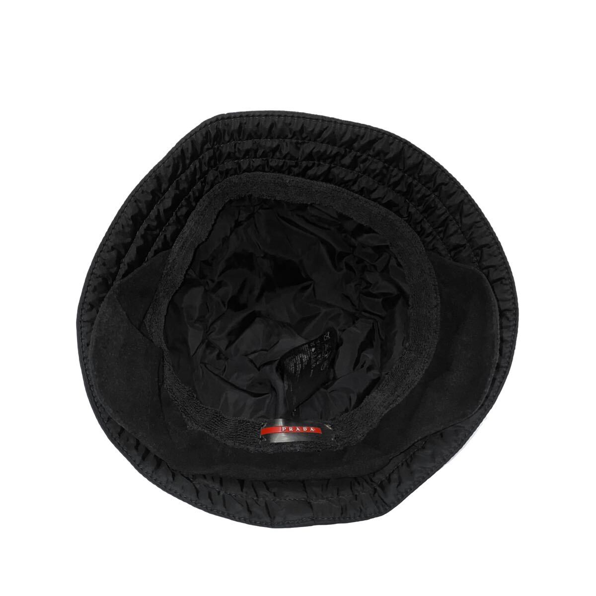 PRADA SPORT プラダスポーツ 90s 00s アーカイヴ ラバーロゴパッチ ナイロン バケット ハット ドッグイヤー 耳あて 帽子 ブラック 黒です。