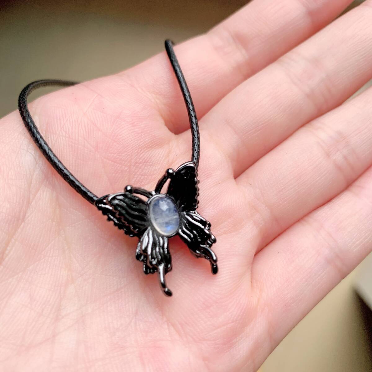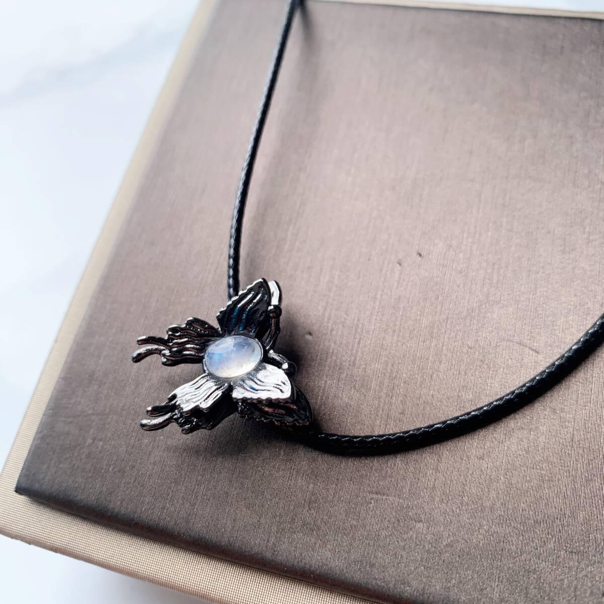◇ブルームーンストーン◇ネックレス◇ペンダント◇蝶形◇パワーストーン◇天然石◇巾着袋付き◇プレゼントにも030P61506