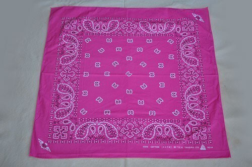 送料込み レザースライダーベルト付き ジャンボバンダナ ピンク 新品コットン 大判サイズ66cm×66cm Paisleyペイズリー