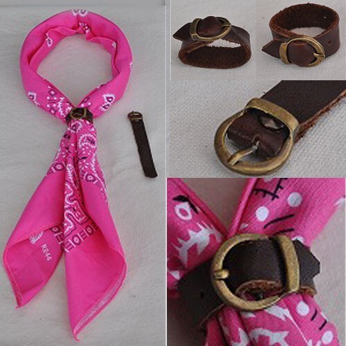 お好みのカラーバンダナ1枚に1本【本革、ホースシュー(蹄鉄)型のバックル付き】