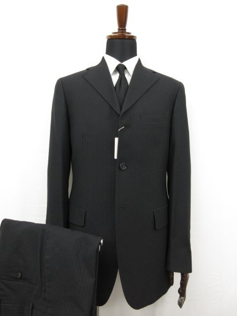 未使用 【TAGLIATORE NAPOLI 1939 タリアトーレ】 シングル3ボタン スーツ (メンズ) 46 ブラック ストライプ織 伊製 TA800/18 ■27SLJ0584