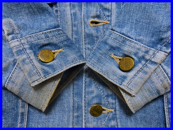 送料無料でお送りいたします。 カラー:USEDインディゴ サイズ:タグ切れのため表記なし(日本サイズでXS-S相当) 【実寸】 着丈 51 袖丈 58 肩幅 41 身幅 46 (当方素人採寸による実測のため、多少の誤差があるかと思います。ご容赦下さい) ■ランク:C ■備考 ※古着ジージャンとして程よいUSED感で着やすいです。 ※通常使用における洗濯による色落ち(ヒゲ、アタリなど)ありで雰囲気良いです。 ※特に目立つ汚れやダメージはなく状態はまずまずです。 ※素材表記タグ読取不可のため不明ですが、恐らくは綿100%のデニム地です。 ※製造国など表記タグ読取不可のため詳細は不明です。 ※アメカジ定番アイテムですので流行にとらわれず長くご愛用いただけます。 ※完璧なお品をお求めの方、また中古品にご理解のない神経質な方におきましては、 恐れ入りますがご入札をお控え頂けますようお願い申し上げます。 -------------------------------------------- N:新品 S:未使用or新品同様のお品 A:コンディション良好な美品 B:使用感の有るまずまず良好なお品 C:全体的に使用感の有るお品 D:状態が悪く強い使用感の有るお品 J:ジャンク品or難有り品 Leeジーンズは、1889年ヘンリー・ディビット・リー氏が カンザス州で創業したH.D. Lee COMPANYの製品で、 1911年に製造を始めたオーバーオール・ジーンズ・ジャケットと共に その品質の良さと着やすさは、 世界3大ジーンズブランドの中でも一番と言われており、 Lee Ridersジーンズ・Lee Ridersジャケット・ホワイトサテンLeeジーンズ等は 世界各市場においてもその知名度は高い。 | |