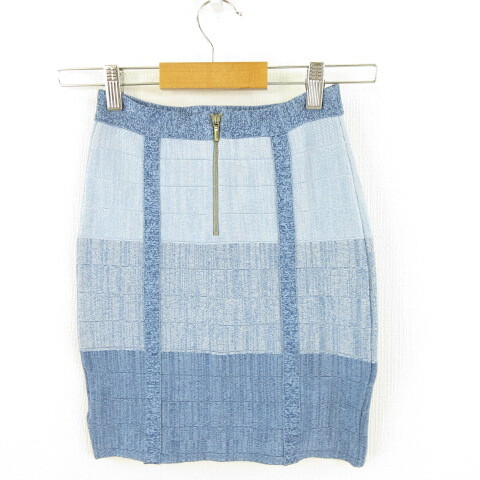 ビービー Bebe ミニスカート ニット タイト ストレッチ 水色 紺 XS *A541 レディース